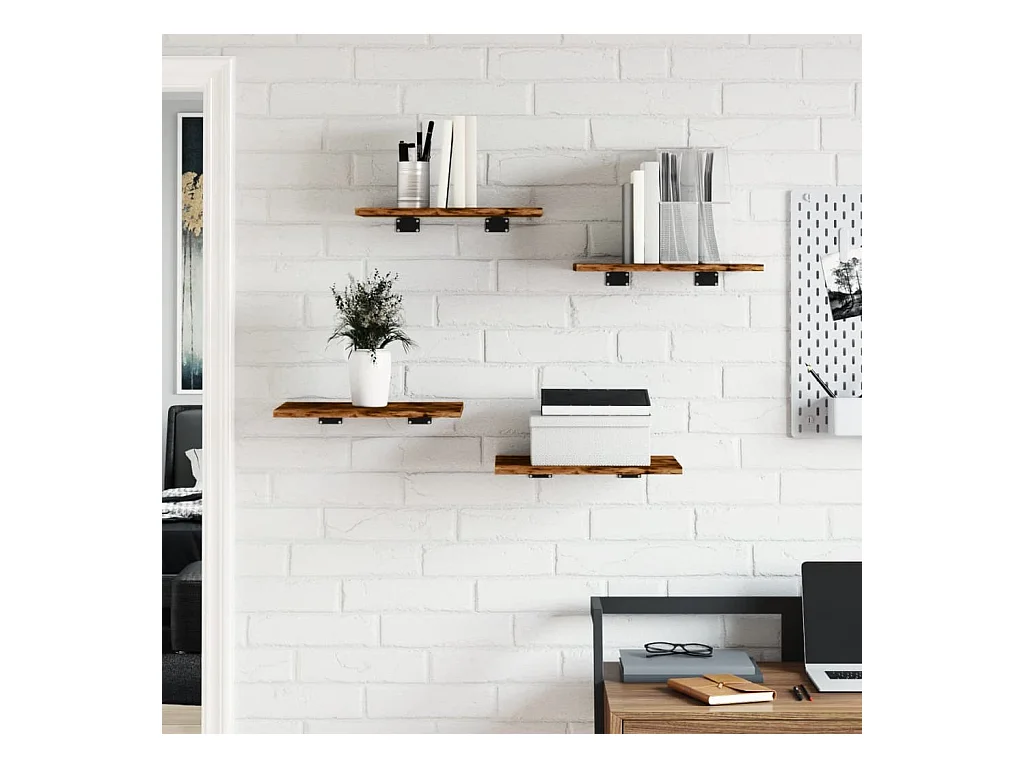 Estantes pared 4 uds madera ingeniería marrón roble 60x40x1,5cm