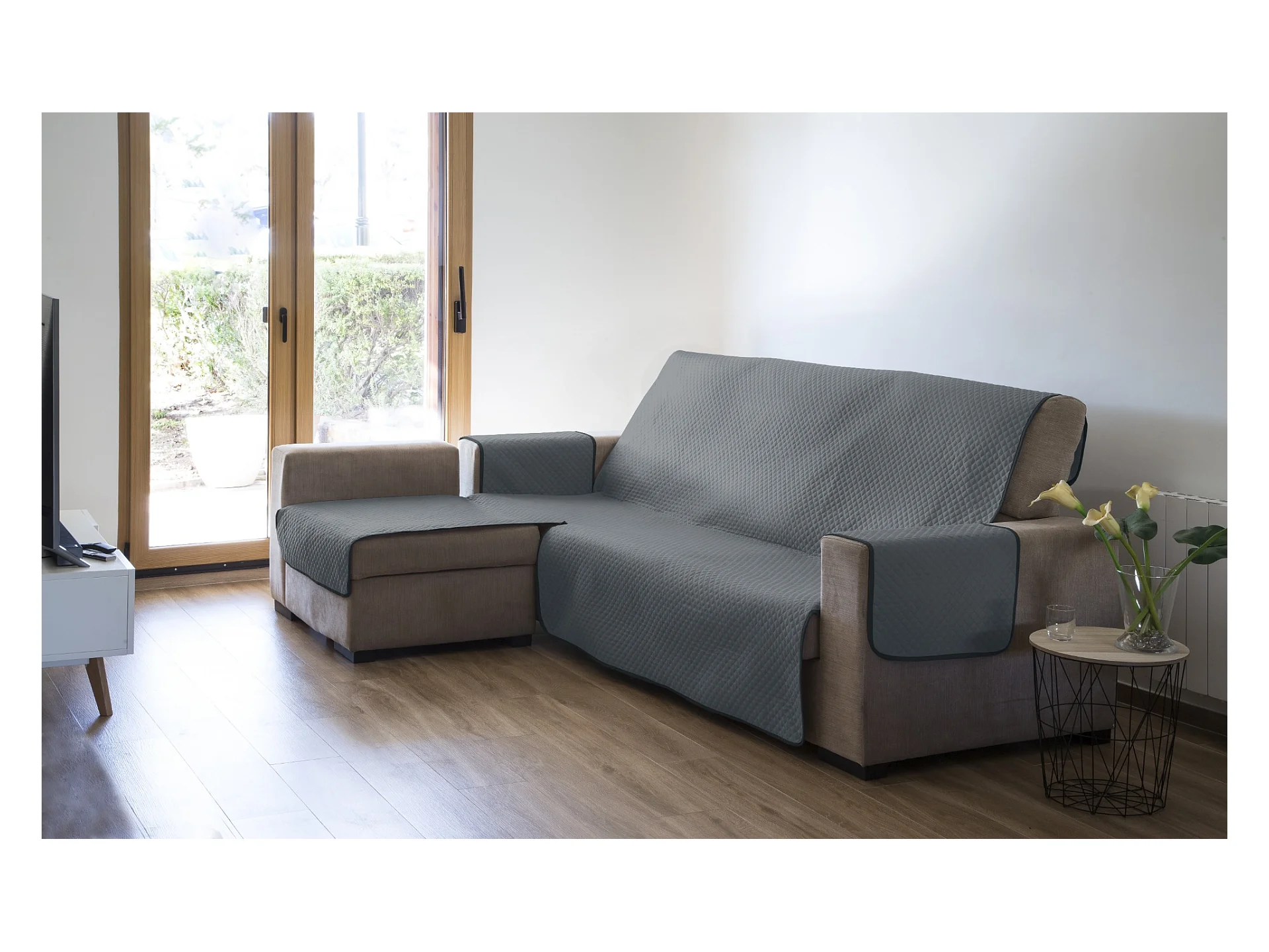 ESTORALIS | Cubre Sofá Acolchado | Chaisse Longue 240 cm Brazo Derecho | Tela 240 x 255 cm | Modelo EDEN Color Gris