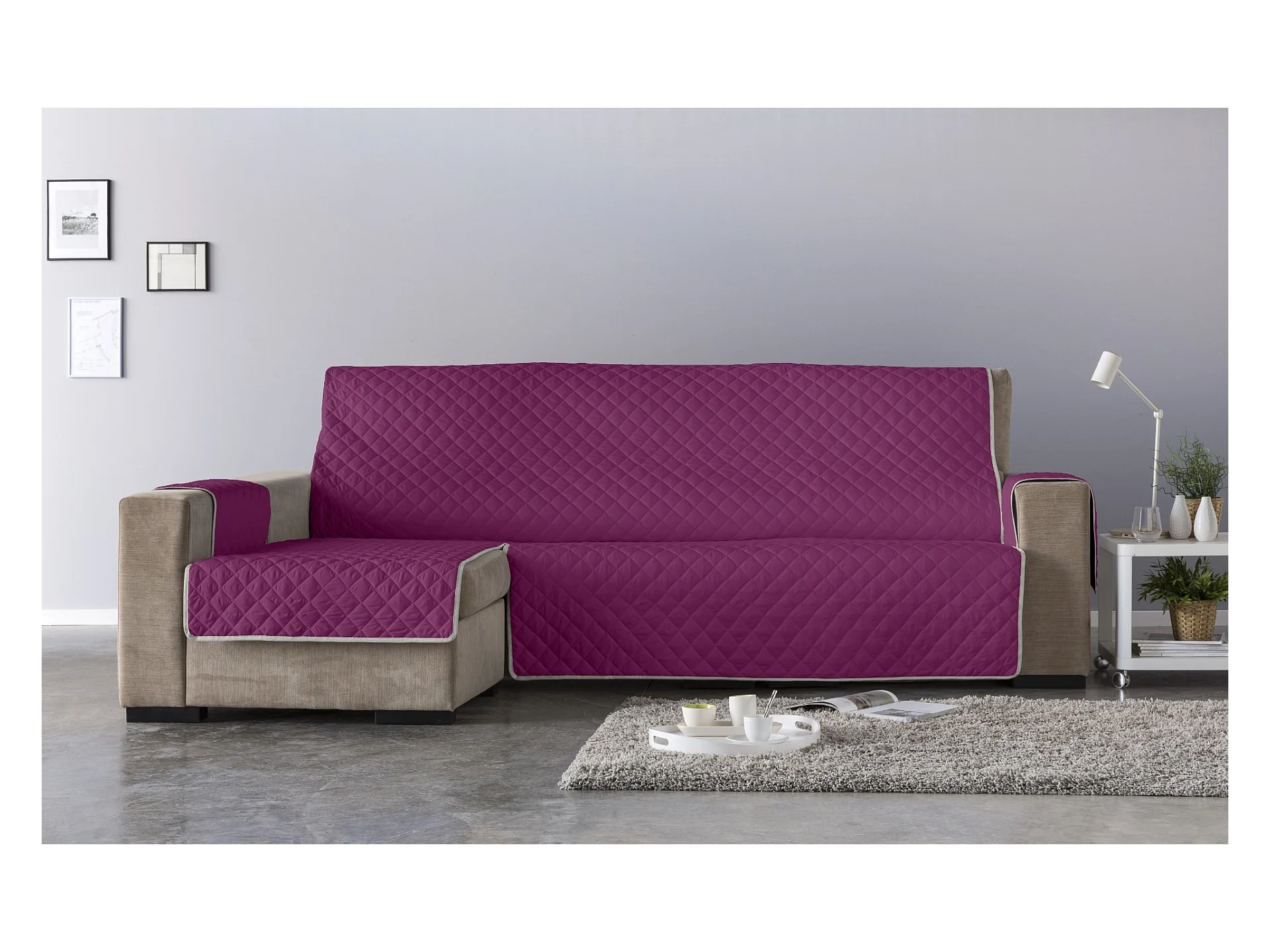 ESTORALIS | Cubre Sofá Acolchado | Chaisse Longue 240 cm Brazo Izquierdo | Tela 240 x 255 cm | Modelo EDEN Color Fuxia