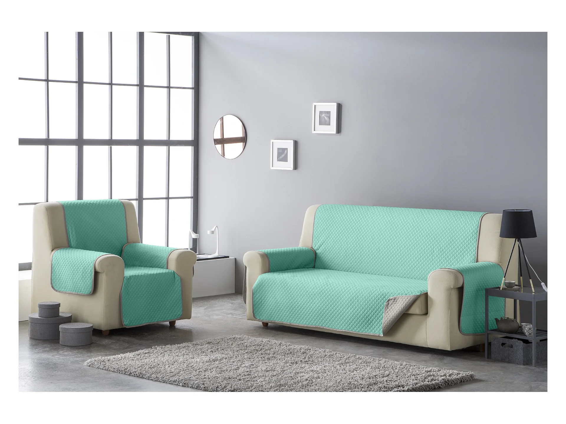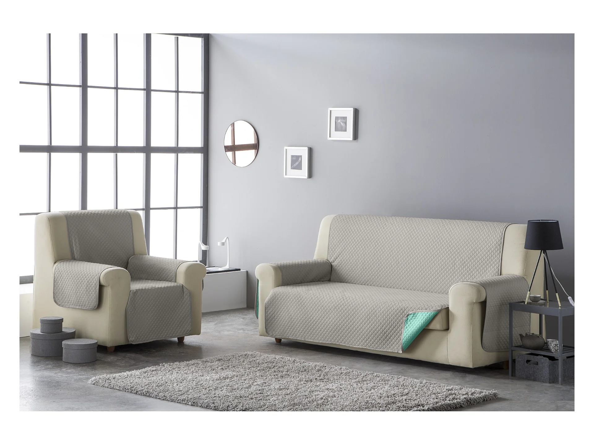 ESTORALIS | Cubre Sofá Acolchado Reversible | Para Sillon o Relax 1 Plaza | Tela 55 x 210 cm | Modelo AVA Color Beige/Turquesa