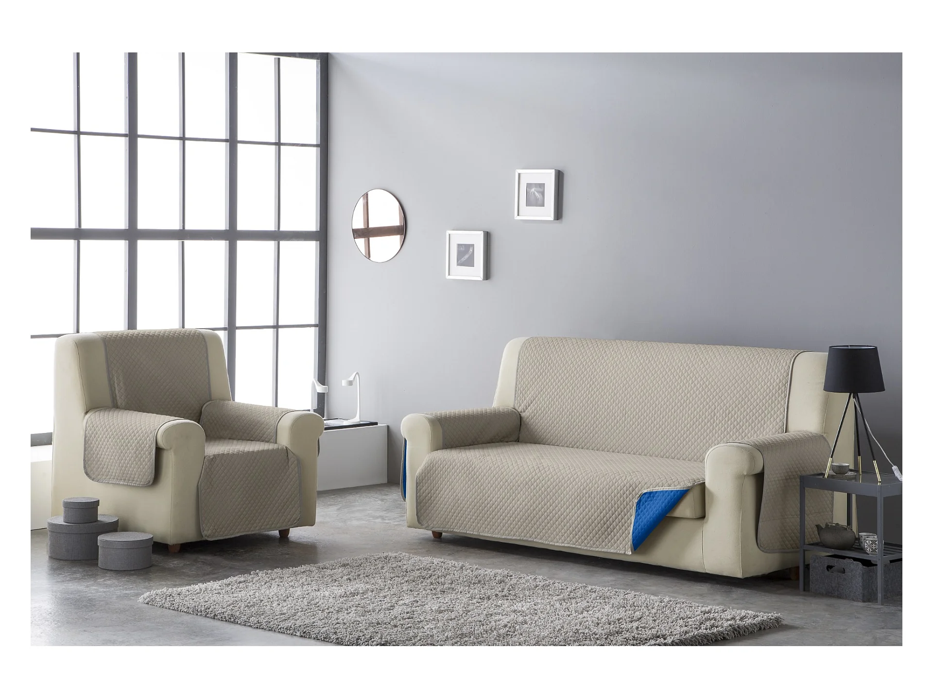 ESTORALIS | Cubre Sofá Acolchado Reversible | Para Sillon o Relax 1 Plaza | Tela 55 x 210 cm | Modelo AVA Color Gris/Azulina