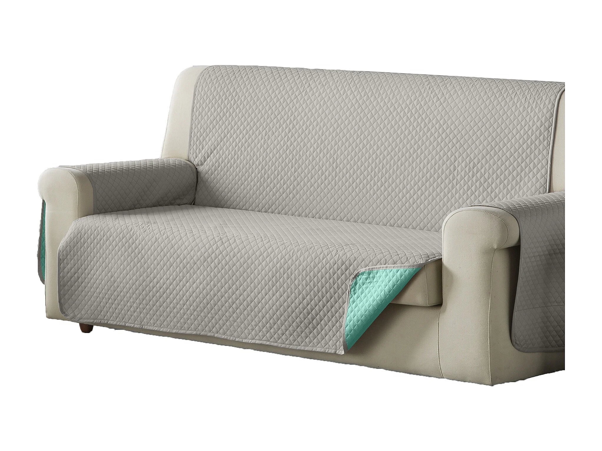 ESTORALIS | Cubre Sofá Acolchado Reversible | Para Sofa de 2 Plazas | Tela 110 x 210 cm | Modelo AVA Color Beige/Turquesa