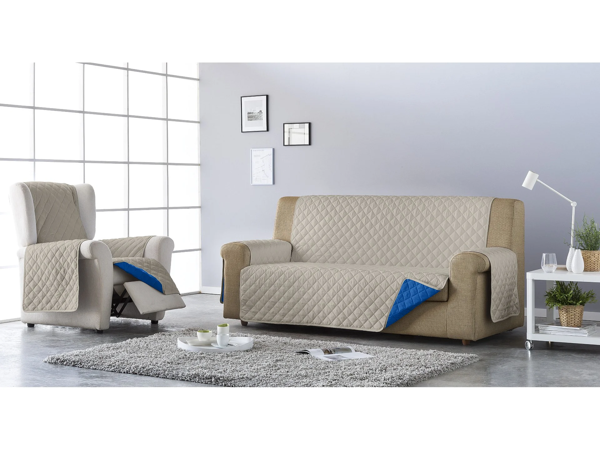 ESTORALIS | Cubre Sofá Acolchado Reversible | Para Sofa de 2 Plazas | Tela 110 x 210 cm | Modelo EDEN Color Gris/Azulina