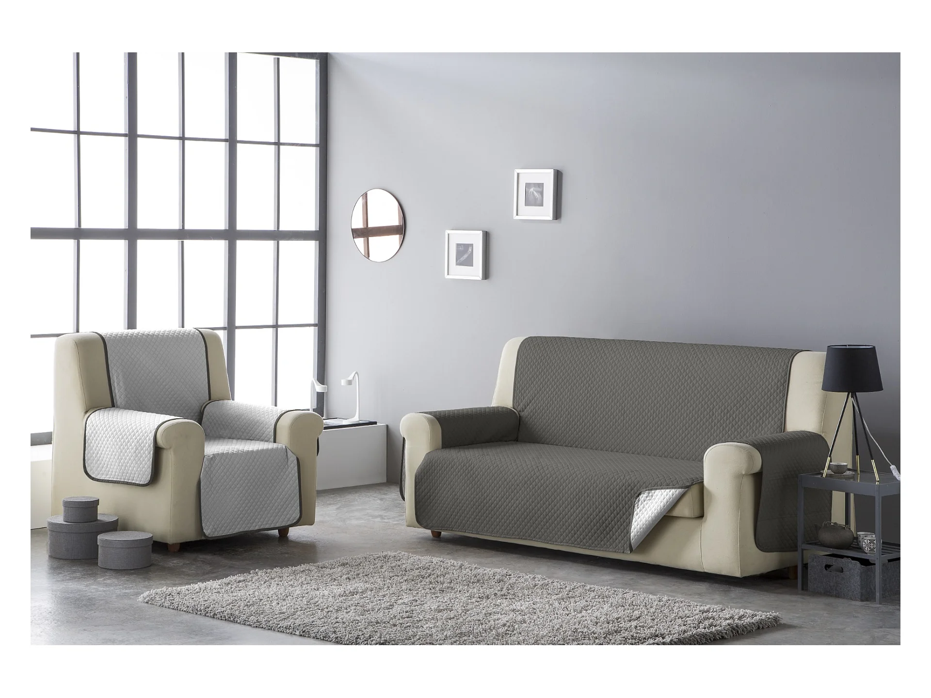 ESTORALIS | Cubre Sofá Acolchado Reversible | Para Sofa de 3 Plazas | Tela 150 x 210 cm | Modelo AVA Color Blanco/Taupe