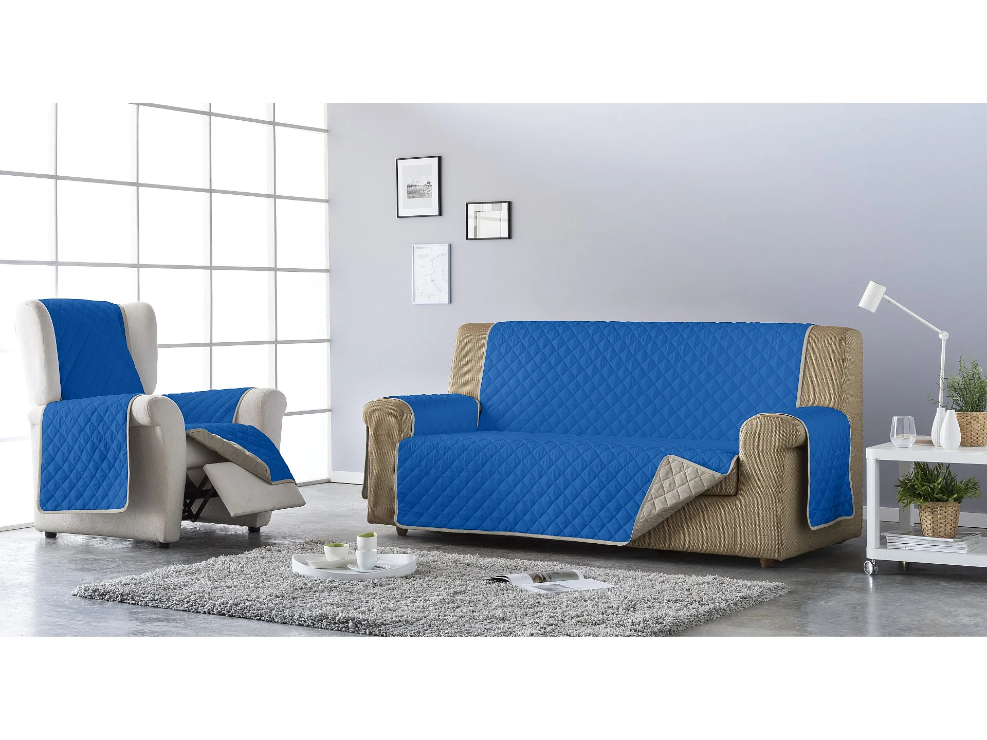 ESTORALIS | Cubre Sofá Acolchado Reversible | Para Sofa de 3 Plazas | Tela 150 x 210 cm | Modelo AVA Color Gris/Azulina