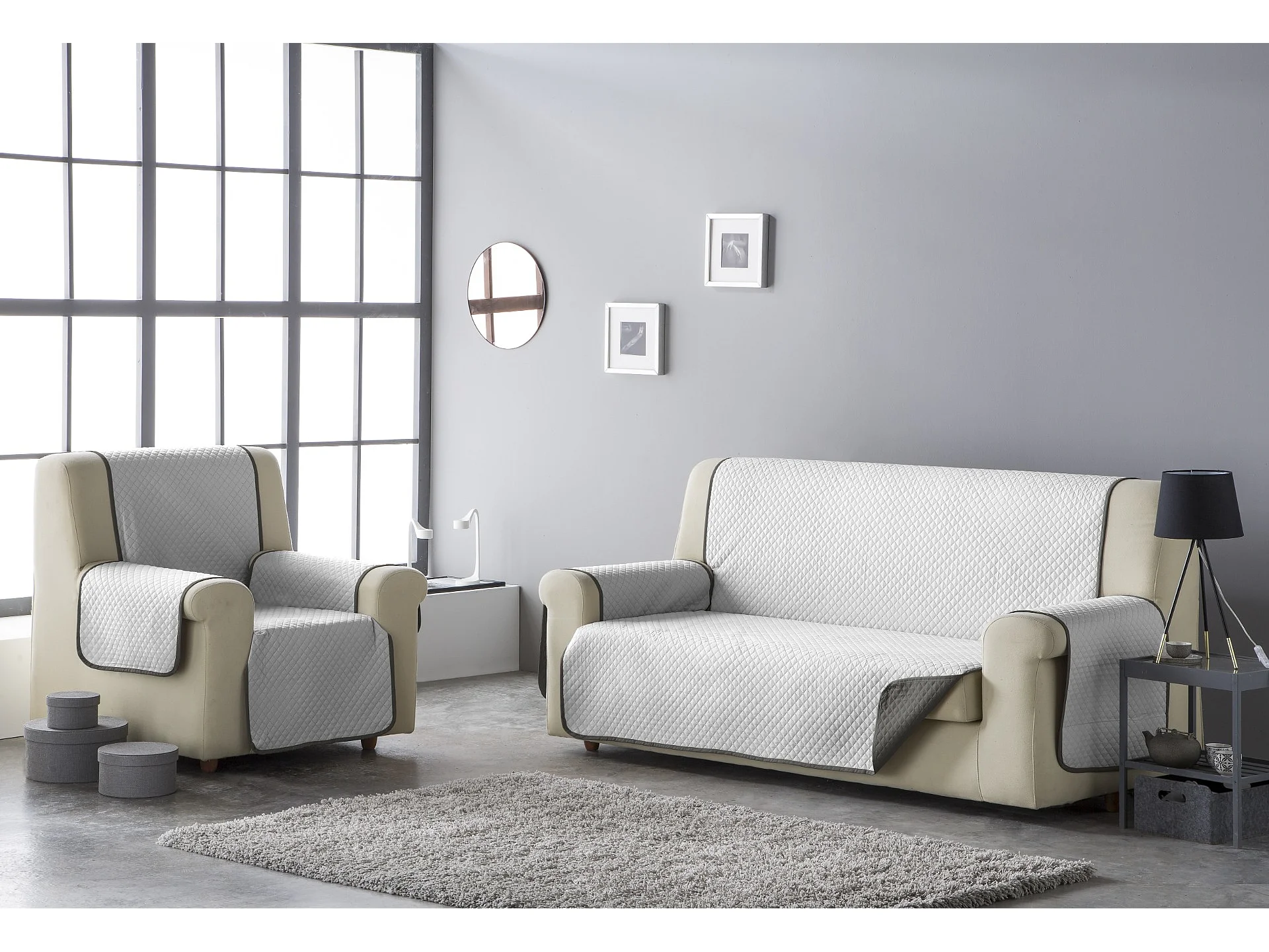 ESTORALIS | Cubre Sofá Acolchado Reversible | Para Sofa de 4 Plazas | Tela 190 x 210 cm | Modelo EDEN Color Blanco/Taupe