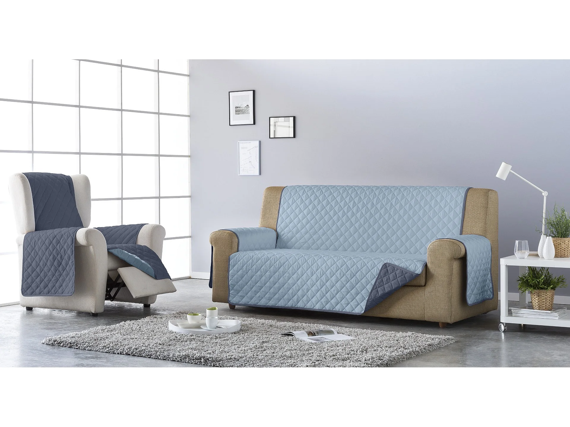 ESTORALIS | Cubre Sofá Acolchado Reversible | Para Sofa de 4 Plazas | Tela 190 x 210 cm | Modelo AVA Color Celeste/Piedra