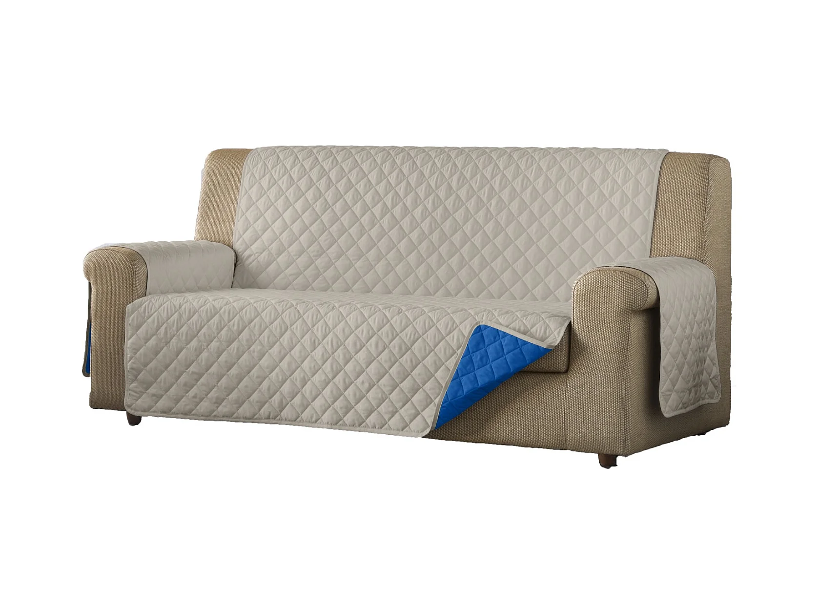 ESTORALIS | Cubre Sofá Acolchado Reversible | Para Sofa de 4 Plazas | Tela 190 x 210 cm | Modelo AVA Color Gris/Azulina
