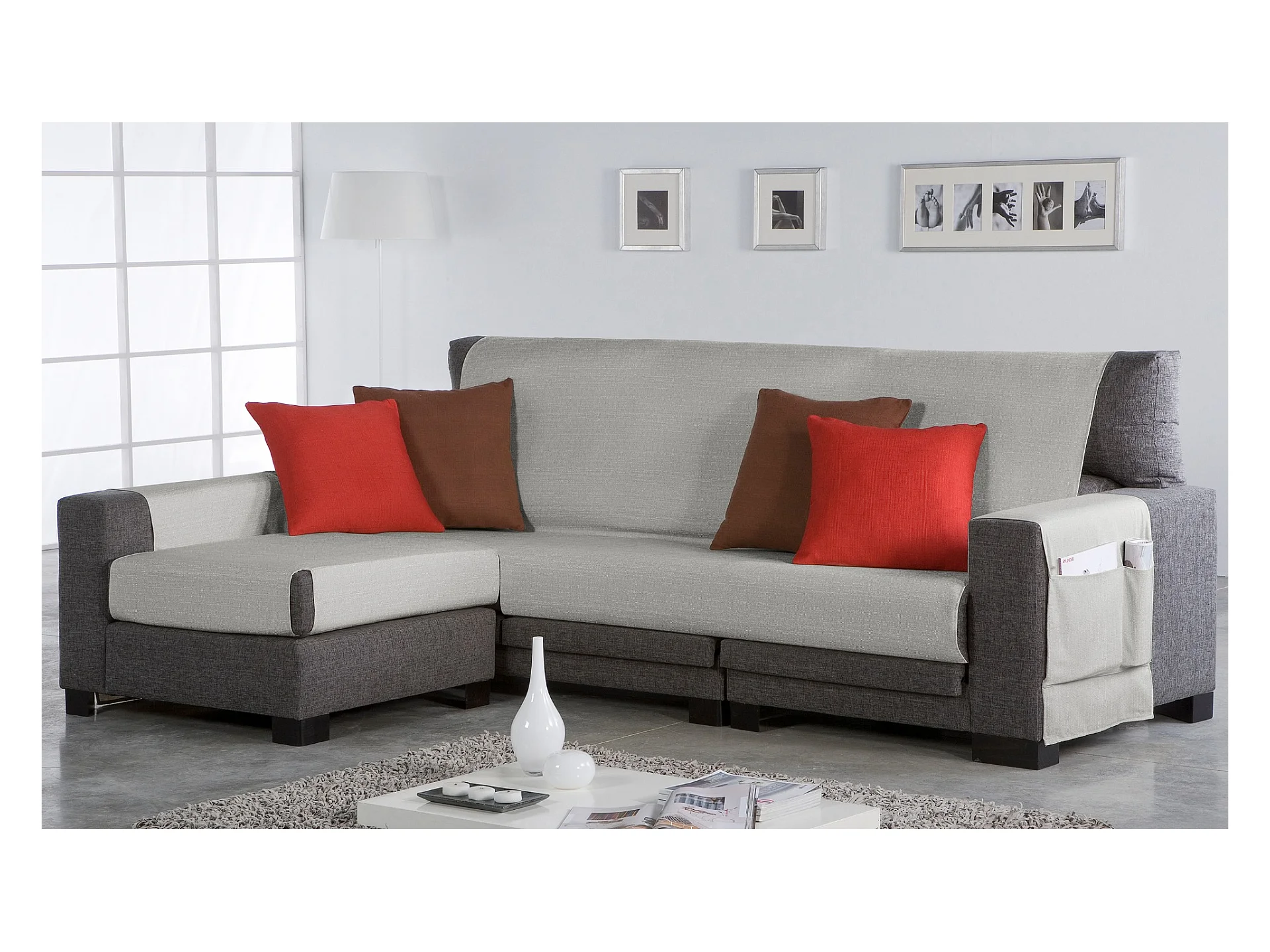 ESTORALIS | Cubre Sofá Tejido Jaquard Resistente | Chaisse Longue 235 cm Brazo Izquierdo | Tela 235 x 255 cm | Modelo BERET Color Lino