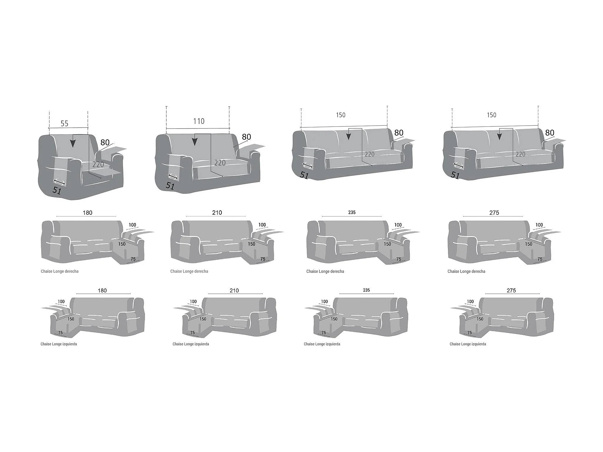 ESTORALIS | Cubre Sofá Acolchado | Chaisse Longue 240 cm Brazo Derecho | Tela 240 x 255 cm | Modelo AVA Color Beige