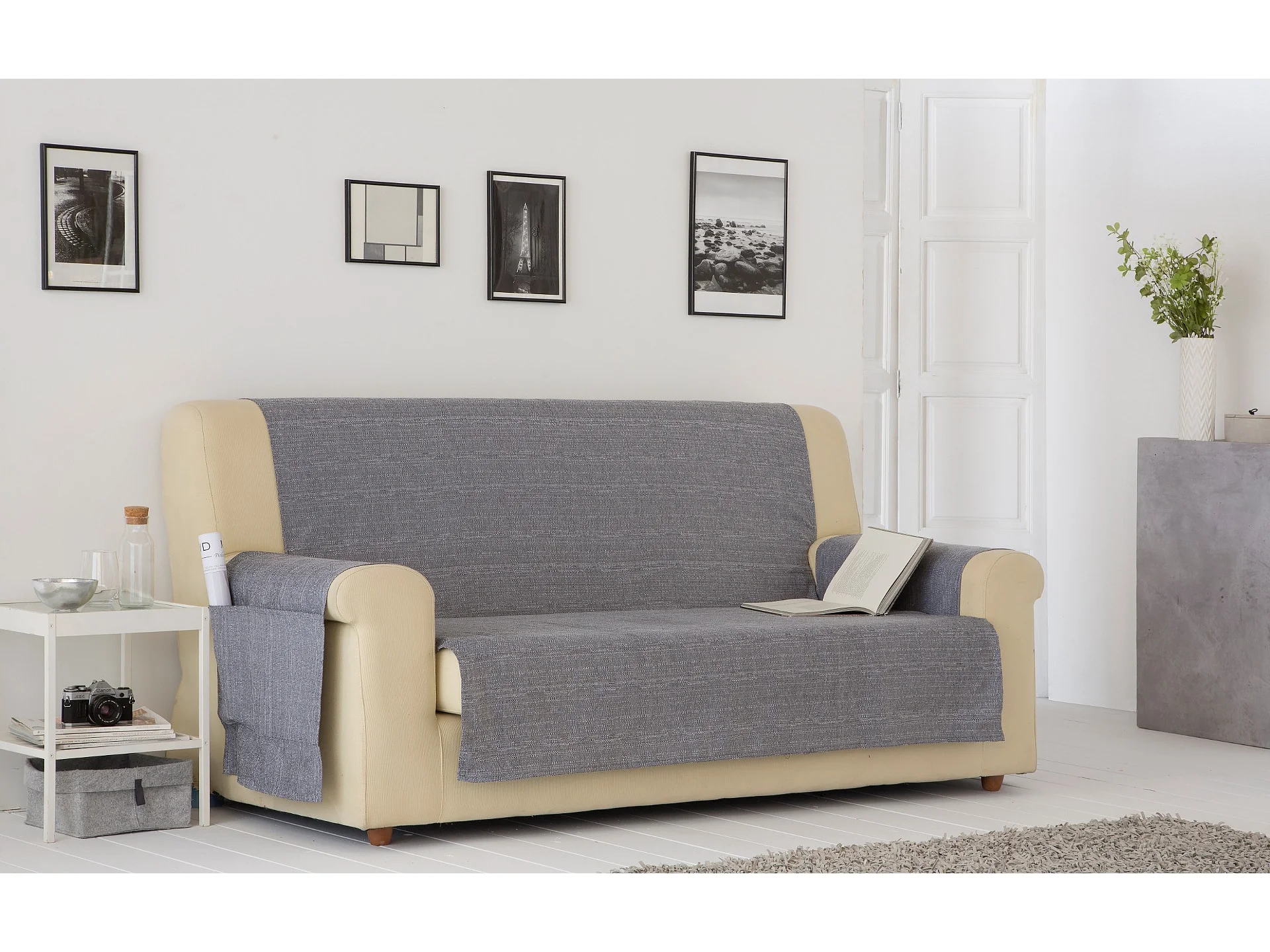 ESTORALIS | Cubre Sofá Tejido Jaquard Resistente | Para Sofa de 3 Plazas | Tela 150 x 210 cm | Modelo BERET Color Gris Marengo