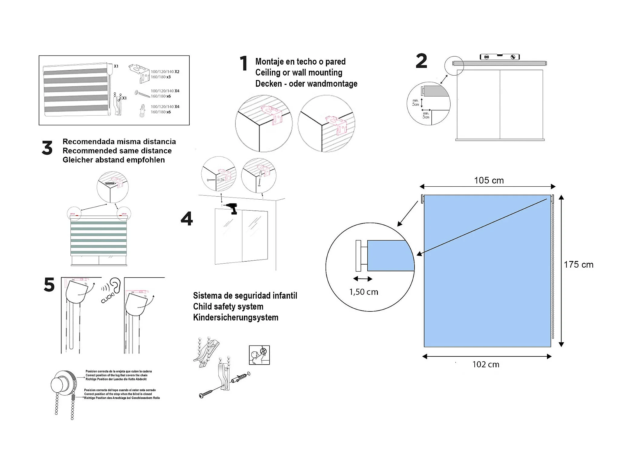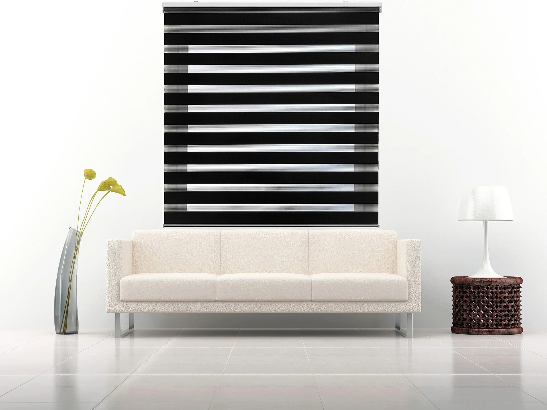 ESTORALIS | Estor Enrollable NOCHE y DIA | 105 x 180 cm (Ancho por Alto) Tamaño de Tela 102 x 175 cm | Modelo SHAE Color Negro
