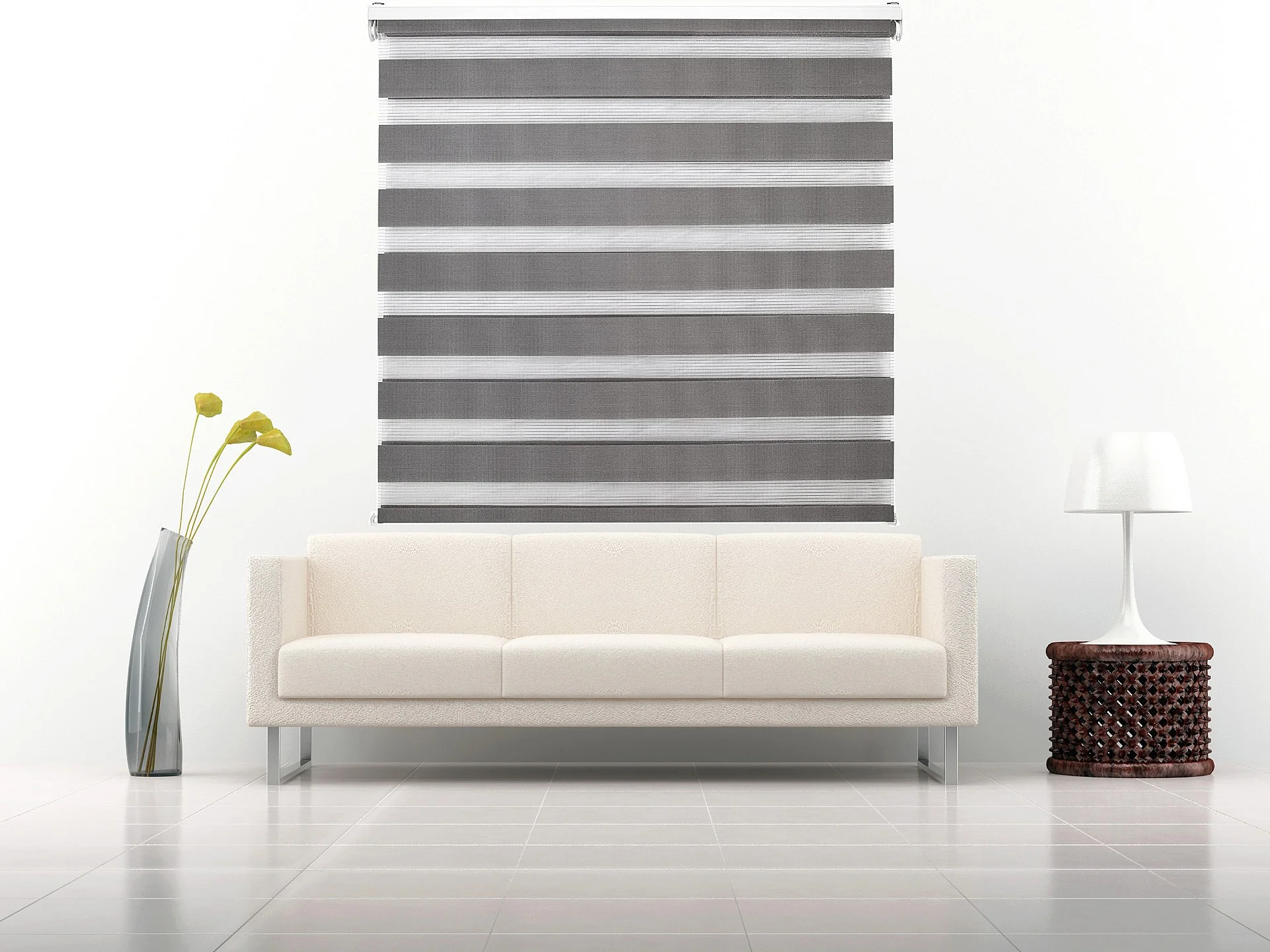ESTORALIS | Estor Enrollable NOCHE y DIA | 145 x 180 cm (Ancho por Alto) Tamaño de Tela 142 x 175 cm | Modelo JEOR Color Gris