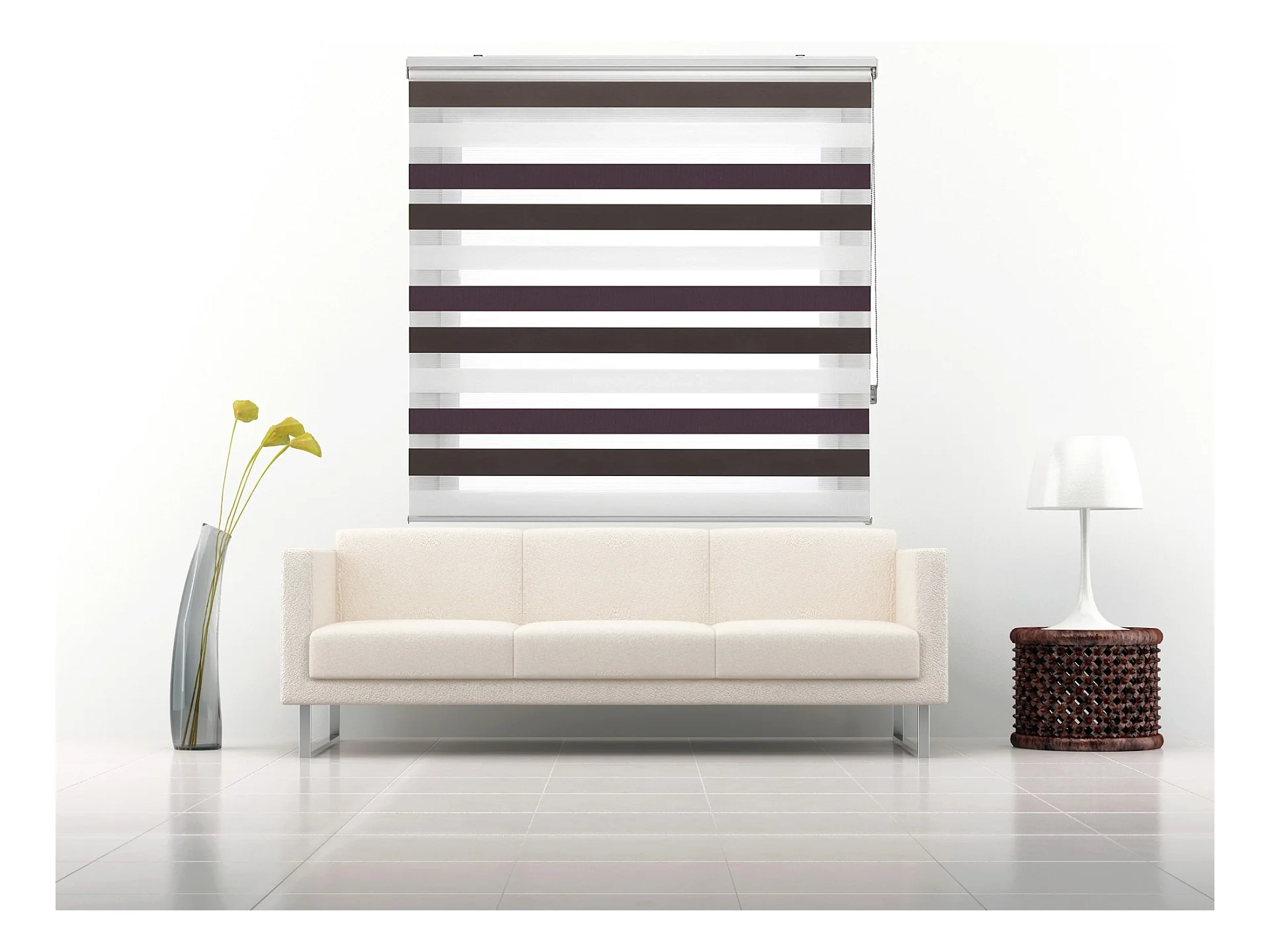 ESTORALIS | Estor Enrollable NOCHE y DIA | 170 x 255 cm (Ancho por Alto) Tamaño de Tela 167 x 250 cm | Modelo LORAS Color Marron/Violeta