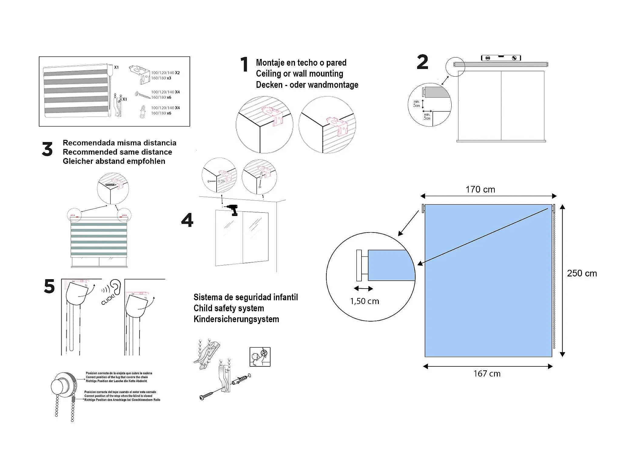 ESTORALIS | Estor Enrollable NOCHE y DIA | 170 x 255 cm (Ancho por Alto) Tamaño de Tela 167 x 250 cm | Modelo JEOR Color Blanco