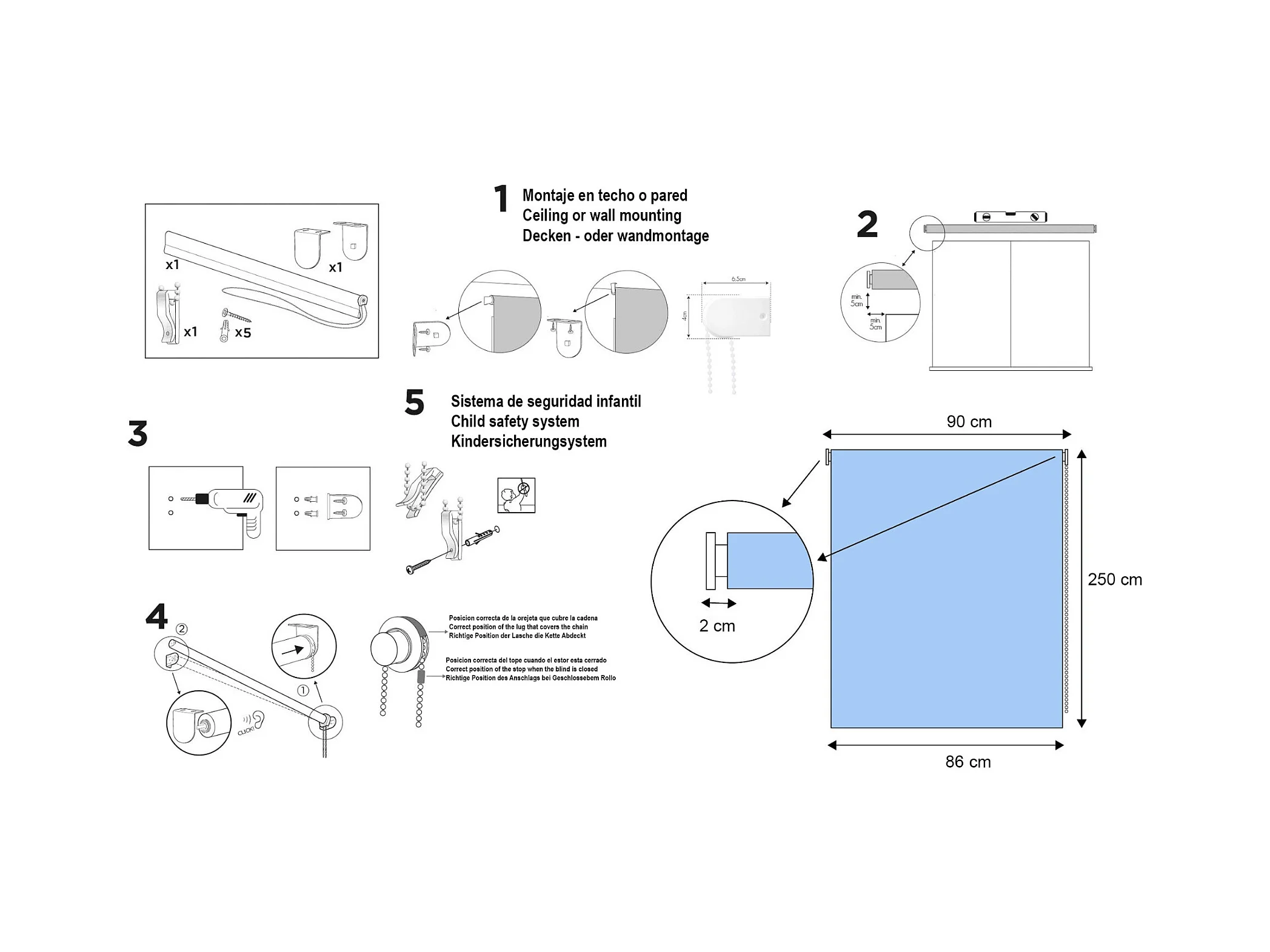 Tamaño: 250x5 cm