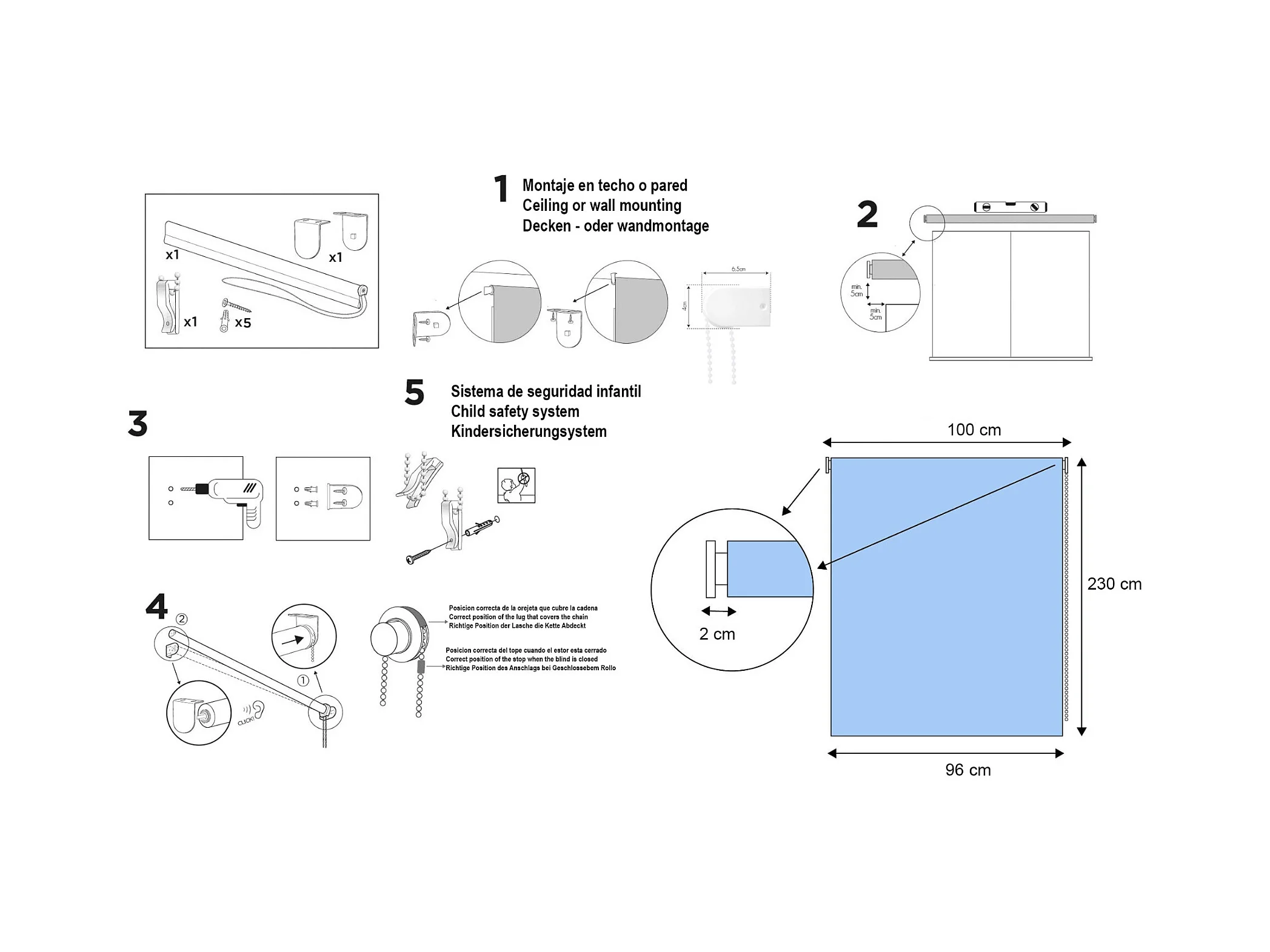 Estor Enrollable Opaco hojas verde 100x230 cm Tela Ancho 95,7cm