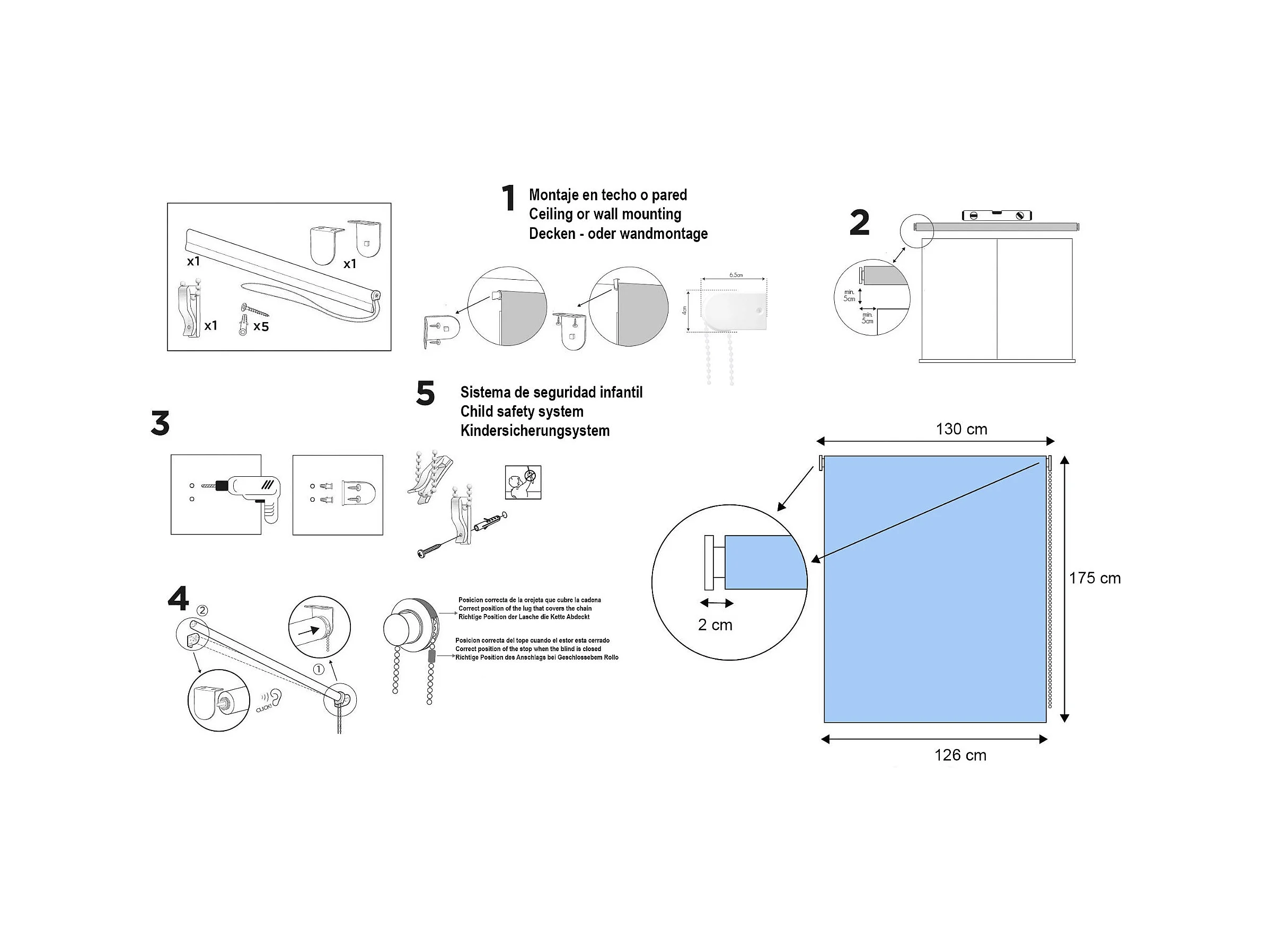 ESTORALIS | Estores Enrollables Translucidos | 130 x 195 cm (Ancho por Alto) Tamaño de Tela 127 x 190 cm | Modelo THEON Color Lino