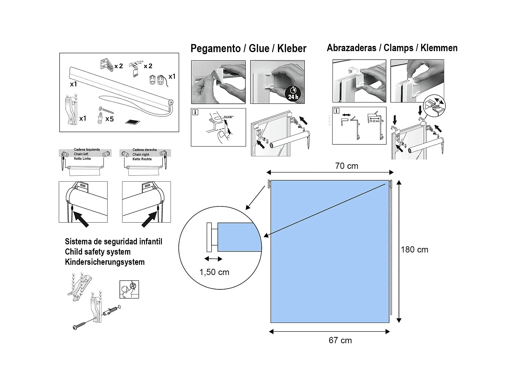 ESTORALIS | Estores Enrollables Opacos Easyfix | 70 x 180 cm (Ancho por Alto) Tamaño de Tela 67 x 175 cm | Modelo DRACARYS Color Blanco Roto