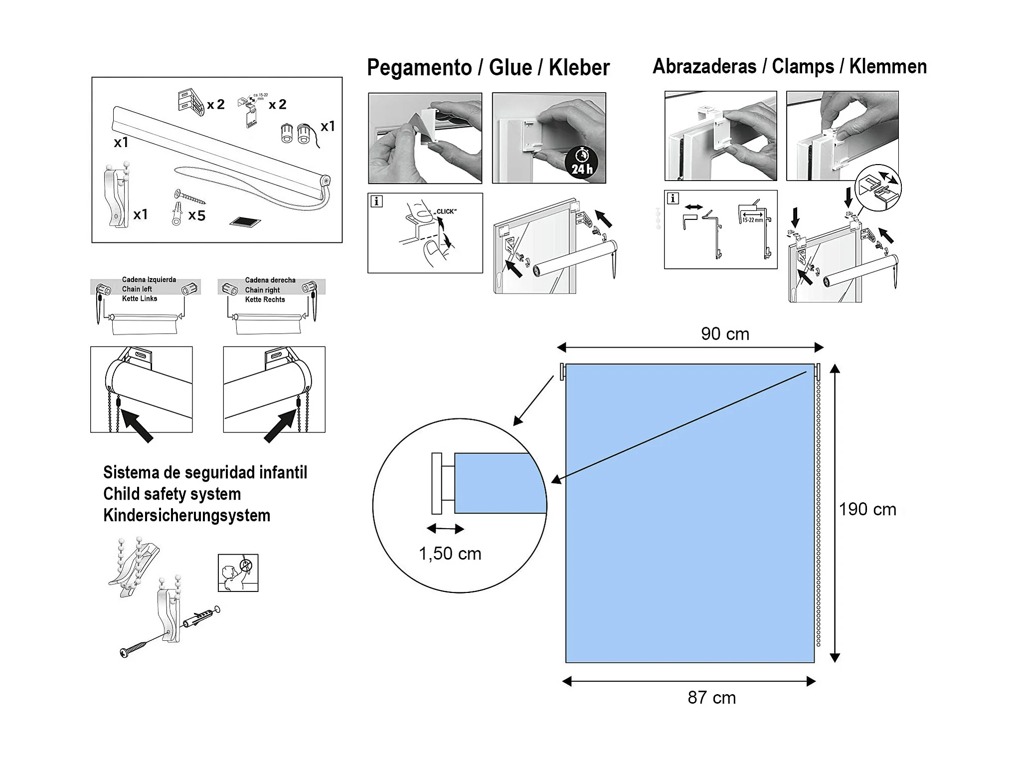 ESTORALIS | Estores Enrollables Opacos Easyfix | 90 x 190 cm (Ancho por Alto) Tamaño de Tela 87 x 190 cm | Modelo RAMSAY Color Lino