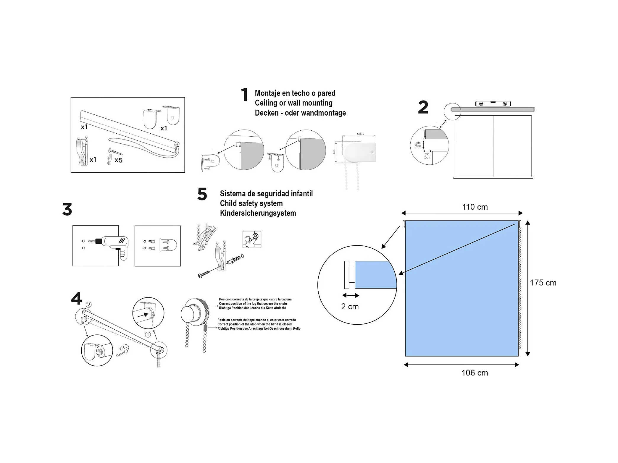ESTORALIS | Estores Personalizados TEXTURAS | 110 x 180 cm (Ancho por Alto) Tamaño de Tela 107 x 175 cm | Modelo MOTAS-2 Color Gris