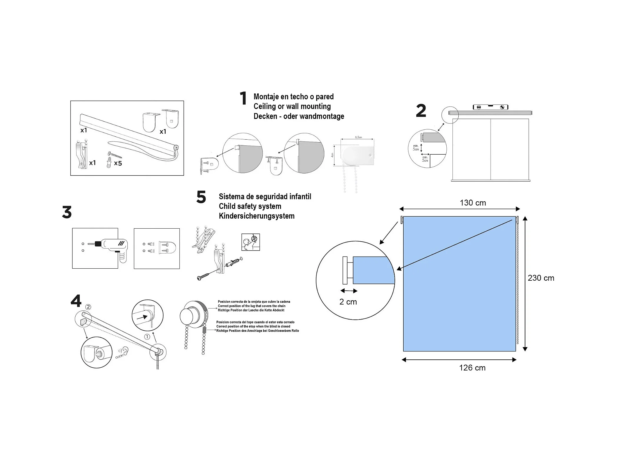 Estor enrollable de exterior azul y blanco 60x250 cm ES321752