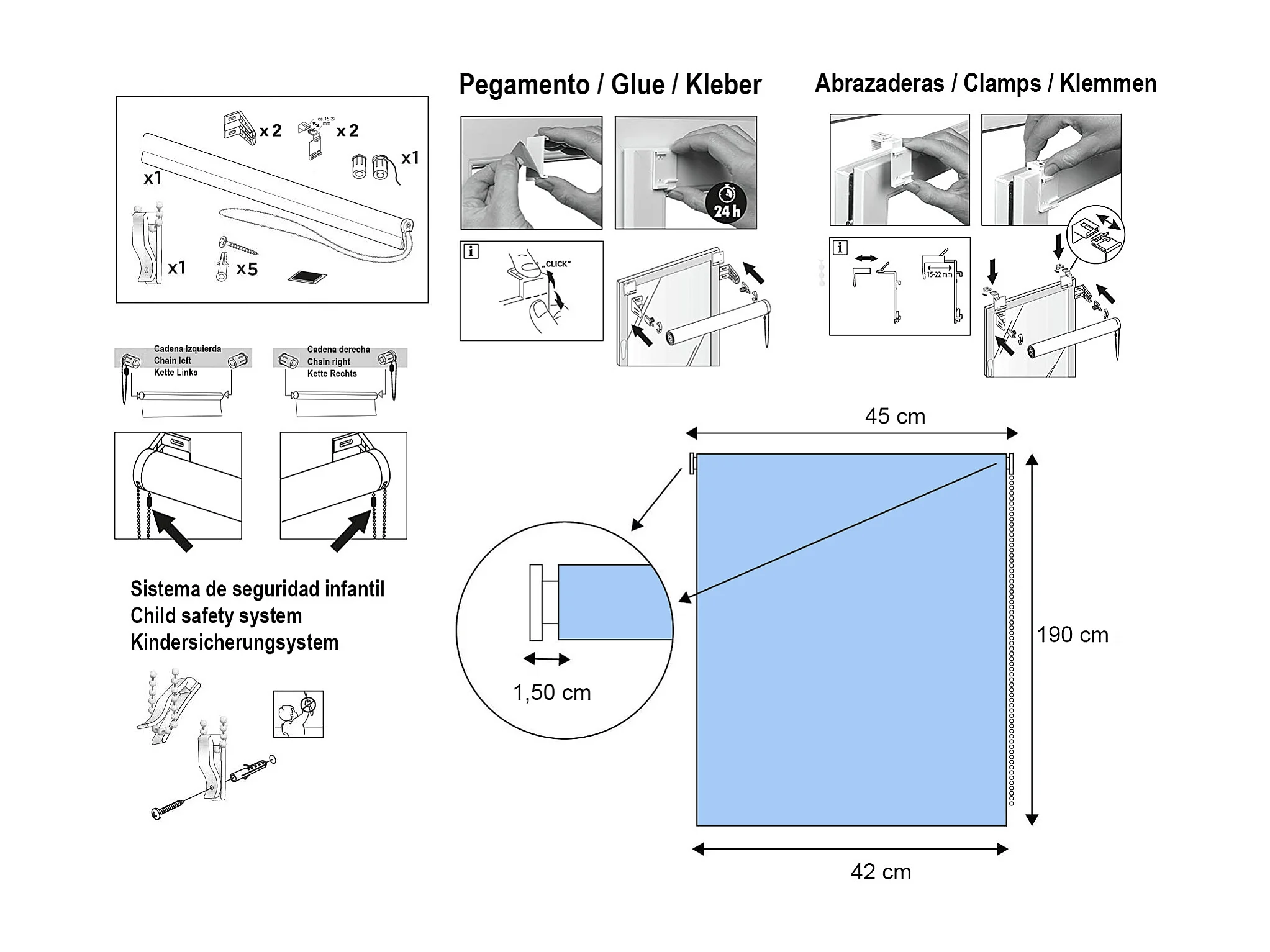 ESTORALIS | Estores Enrollables Translúcidos Easyfix | 45 x 190 cm (Ancho por Alto) Tamaño de Tela 42 x 190 cm | Modelo THEON Color Lino