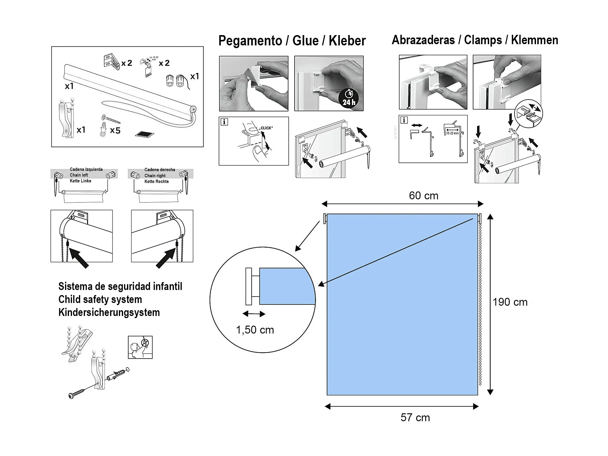 ESTORALIS | Estores Enrollables Translúcidos Easyfix | 60 x 190 cm (Ancho por Alto) Tamaño de Tela 57 x 190 cm | Modelo ROBERT Color Azul