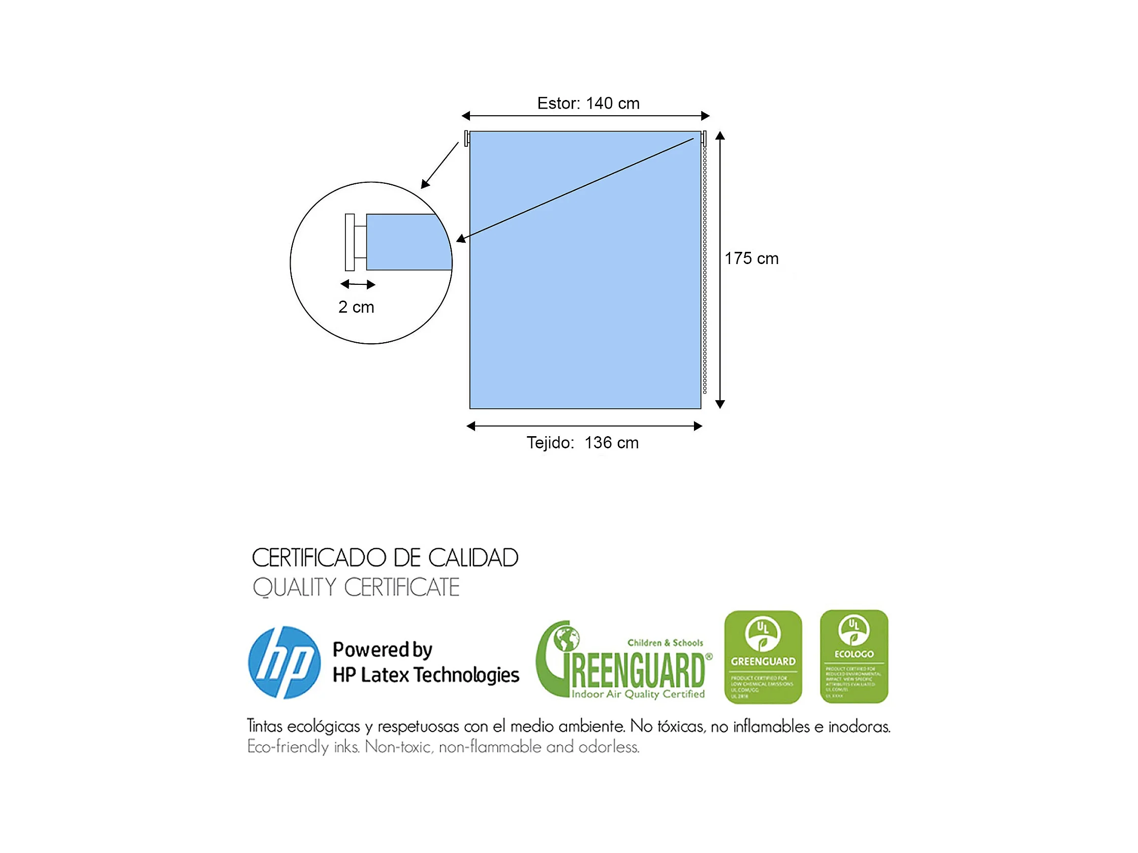 ESTORALIS | Estor Enrollable NOCHE y DIA | 145 x 180 cm (Ancho por Alto) Tamaño de Tela 142 x 175 cm | Modelo SHAE Color Celeste