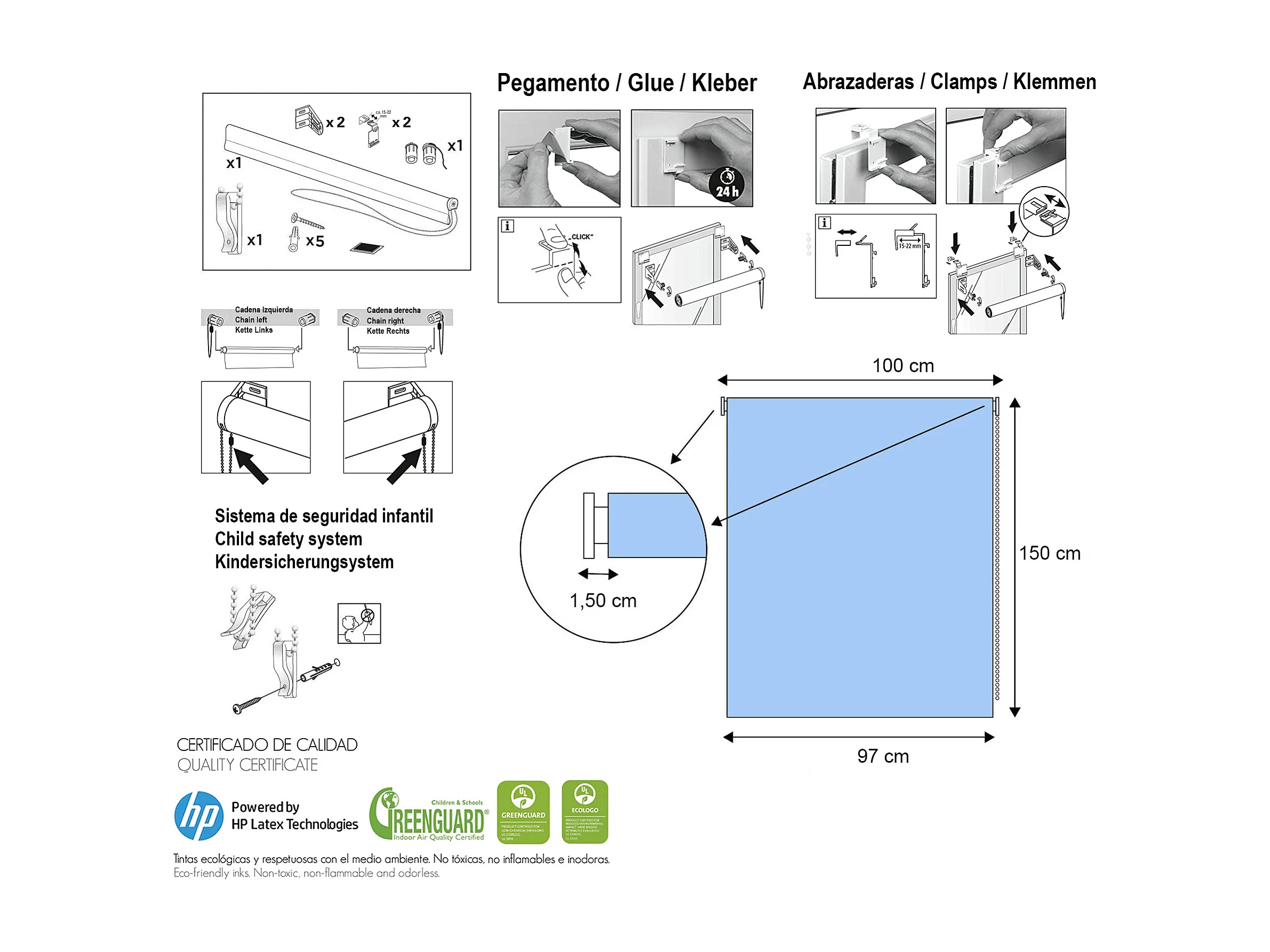 ESTORALIS | Estores Personalizados Easyfix INFANTILES | 100 x 150 cm (Ancho por Alto) Tamaño de Tela 97 x 150 cm | Modelo I-3049 Color Unico