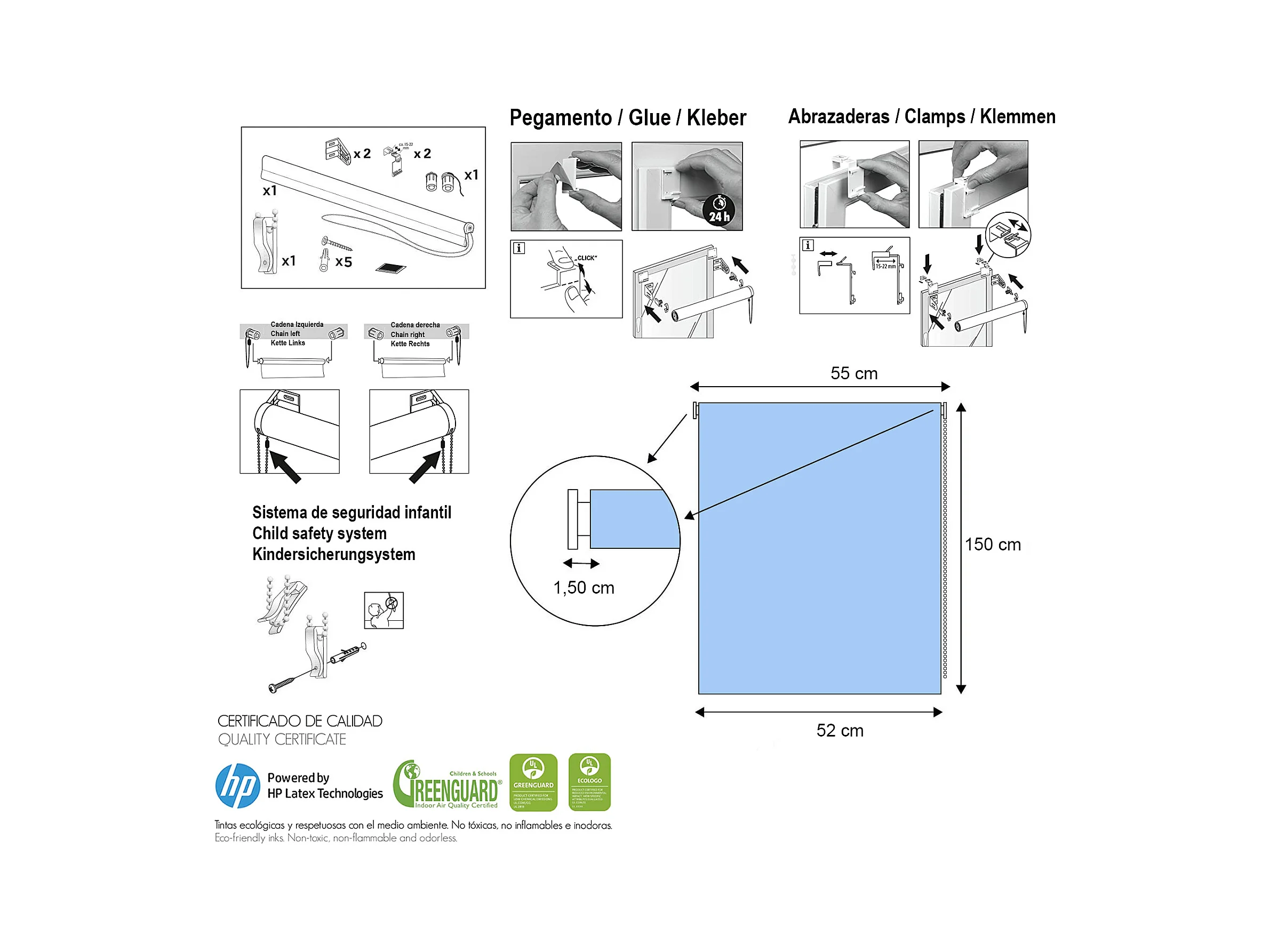 ESTORALIS | Estores Personalizados Easyfix INFANTILES | 50 x 150 cm (Ancho por Alto) Tamaño de Tela 47 x 150 cm | Modelo I-3049 Color Unico