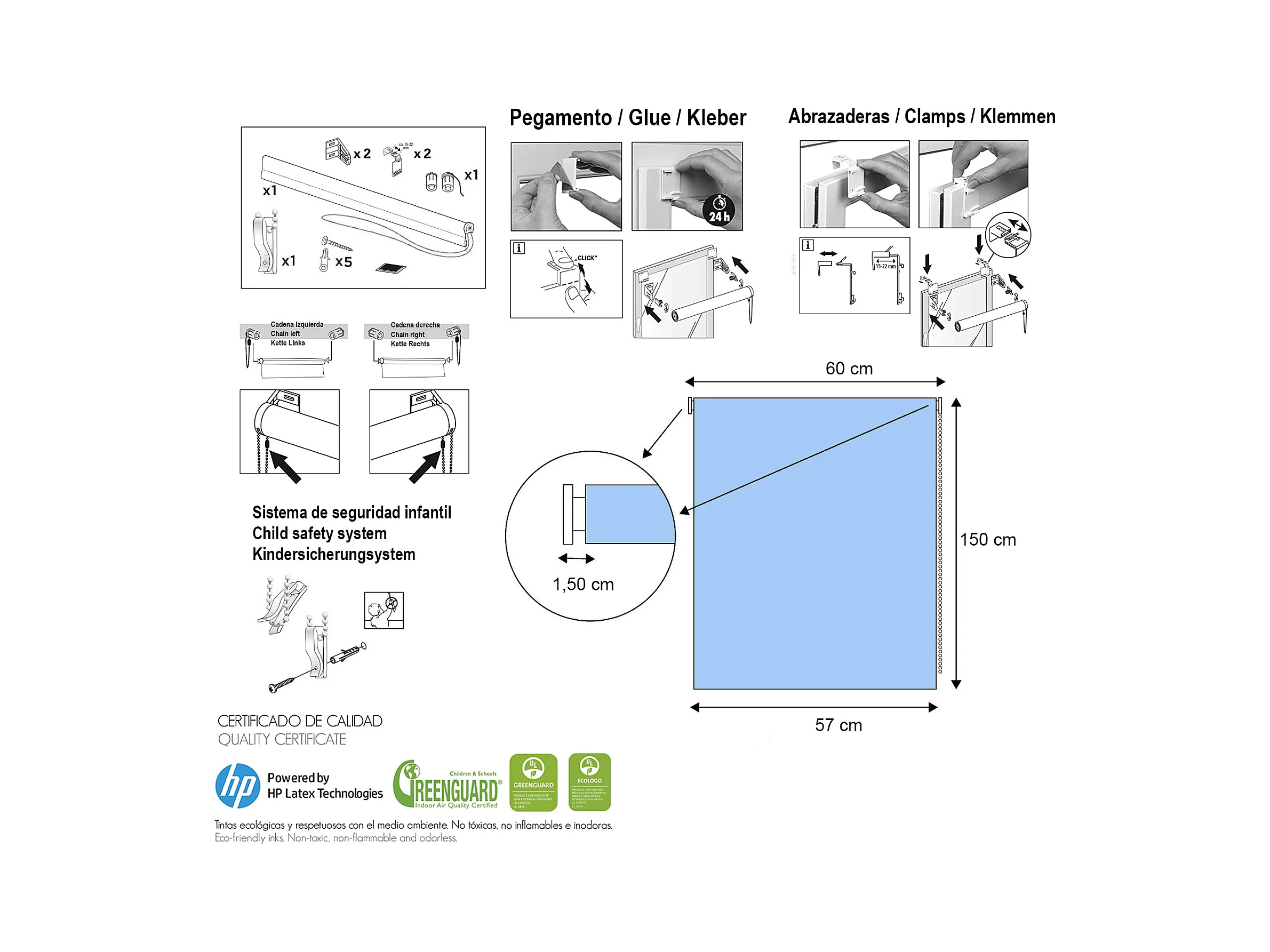 ESTORALIS | Estores Personalizados Easyfix INFANTILES | 60 x 150 cm (Ancho por Alto) Tamaño de Tela 57 x 150 cm | Modelo I-108 Color Unico
