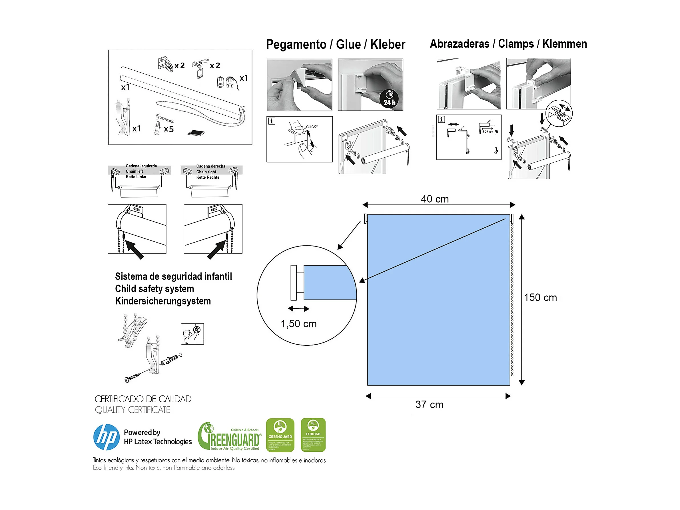 ESTORALIS | Estores Personalizados Easyfix INFANTILES | 40 x 150 cm (Ancho por Alto) Tamaño de Tela 37 x 150 cm | Modelo I-109 Color Unico