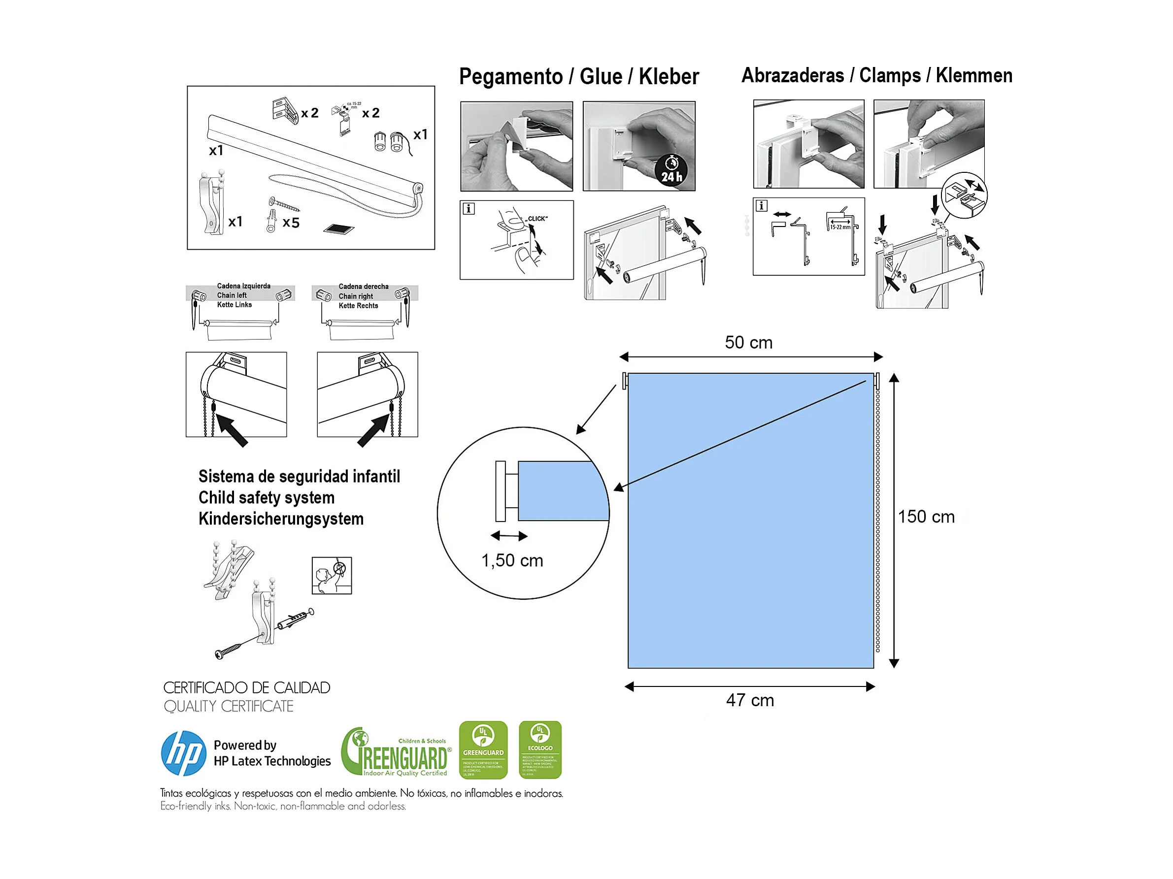 ESTORALIS | Estores Personalizados Easyfix INFANTILES | 50 x 150 cm (Ancho por Alto) Tamaño de Tela 47 x 150 cm | Modelo I-111 Color Unico