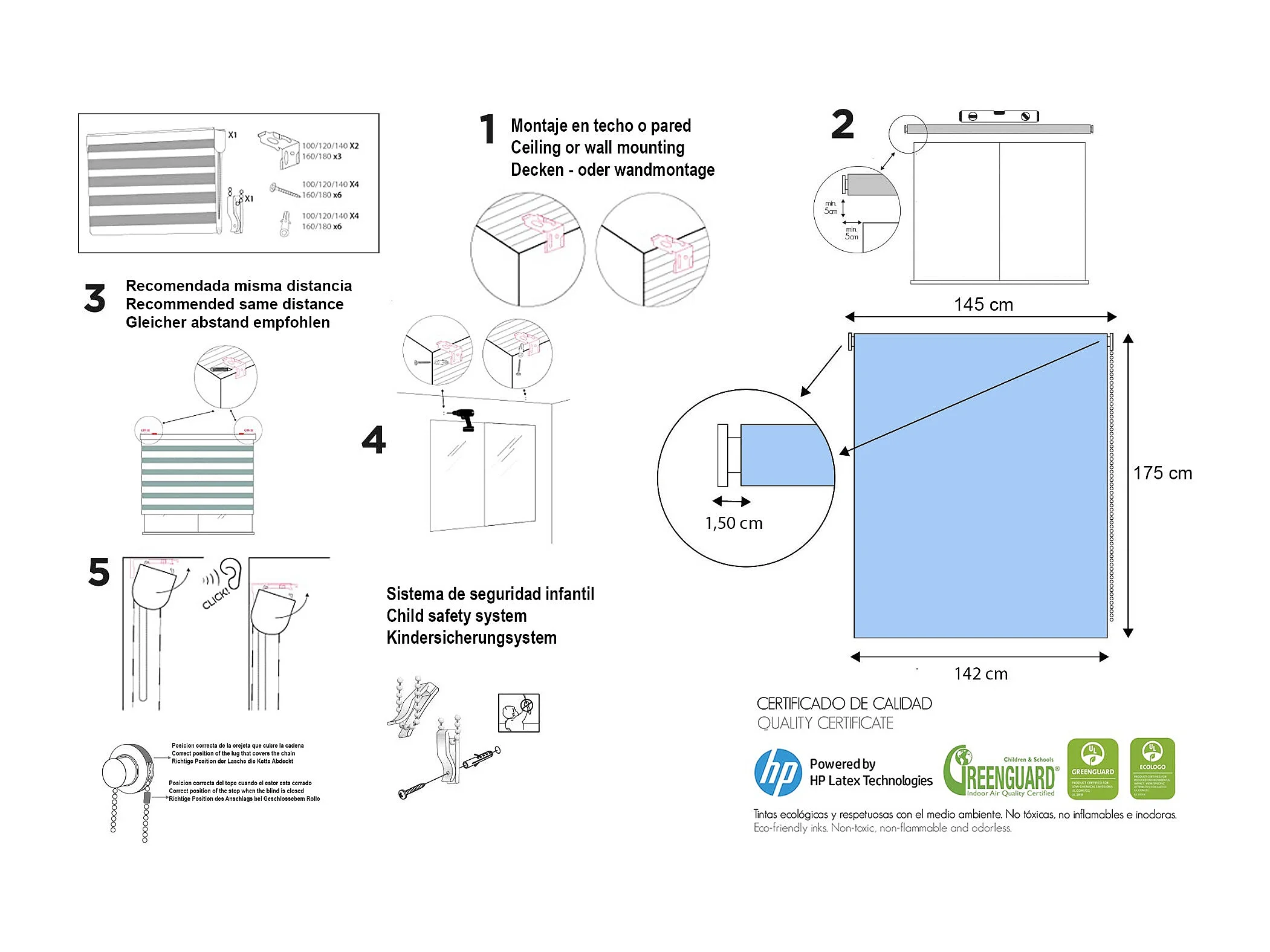 ESTORALIS | Estores Personalizados NOCHE y DIA | 150 x 180 cm (Ancho por Alto) Tamaño de Tela 147 x 175 cm | Modelo C-1225 Color Unico