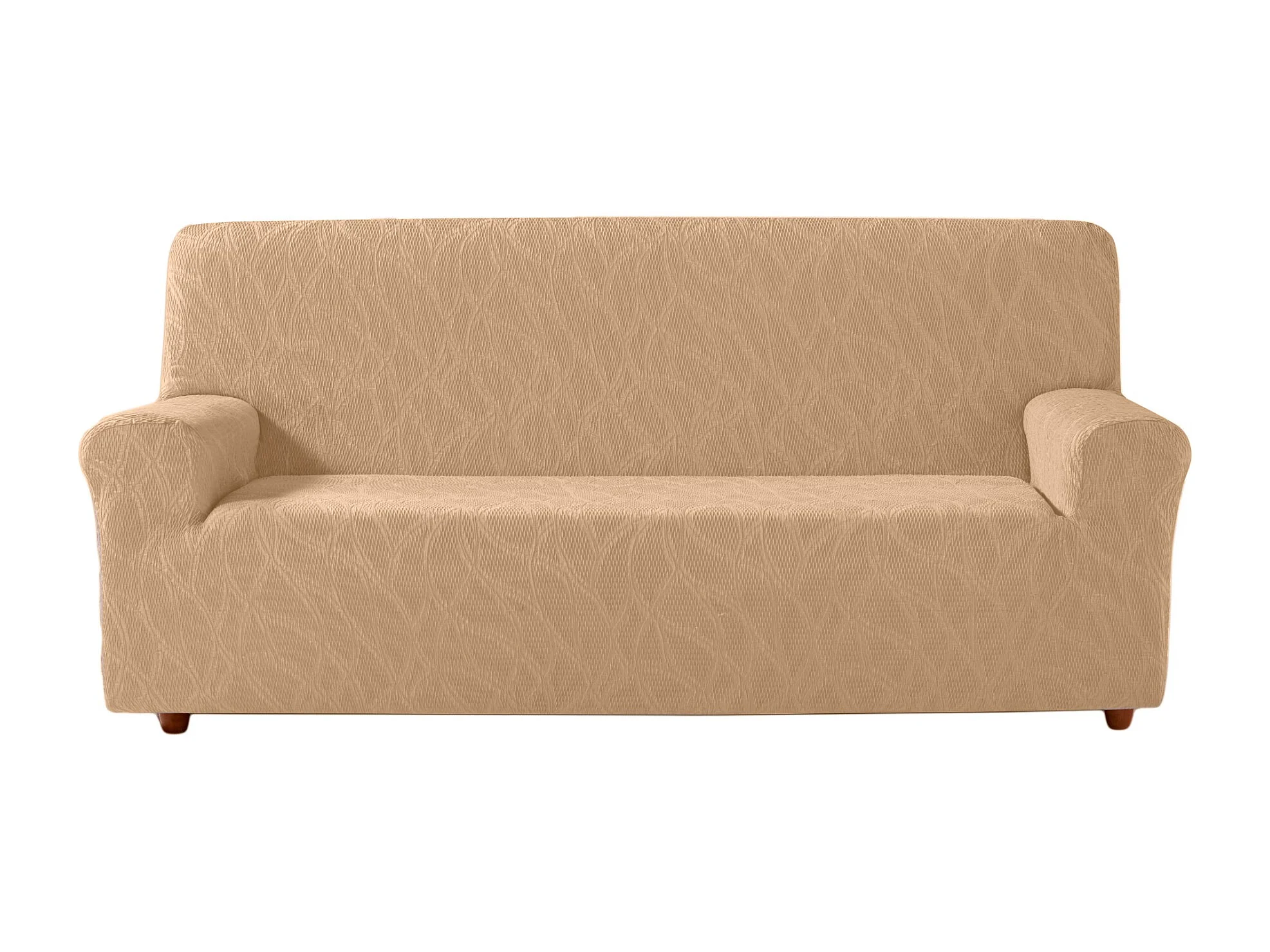 ESTORALIS | Funda Sofá Lazos Tejido Jaquard Resistente | Para Sofa de 2 Plazas | Tamaño ( de 140 a 170 cm. ) | Modelo BERET Color Lino