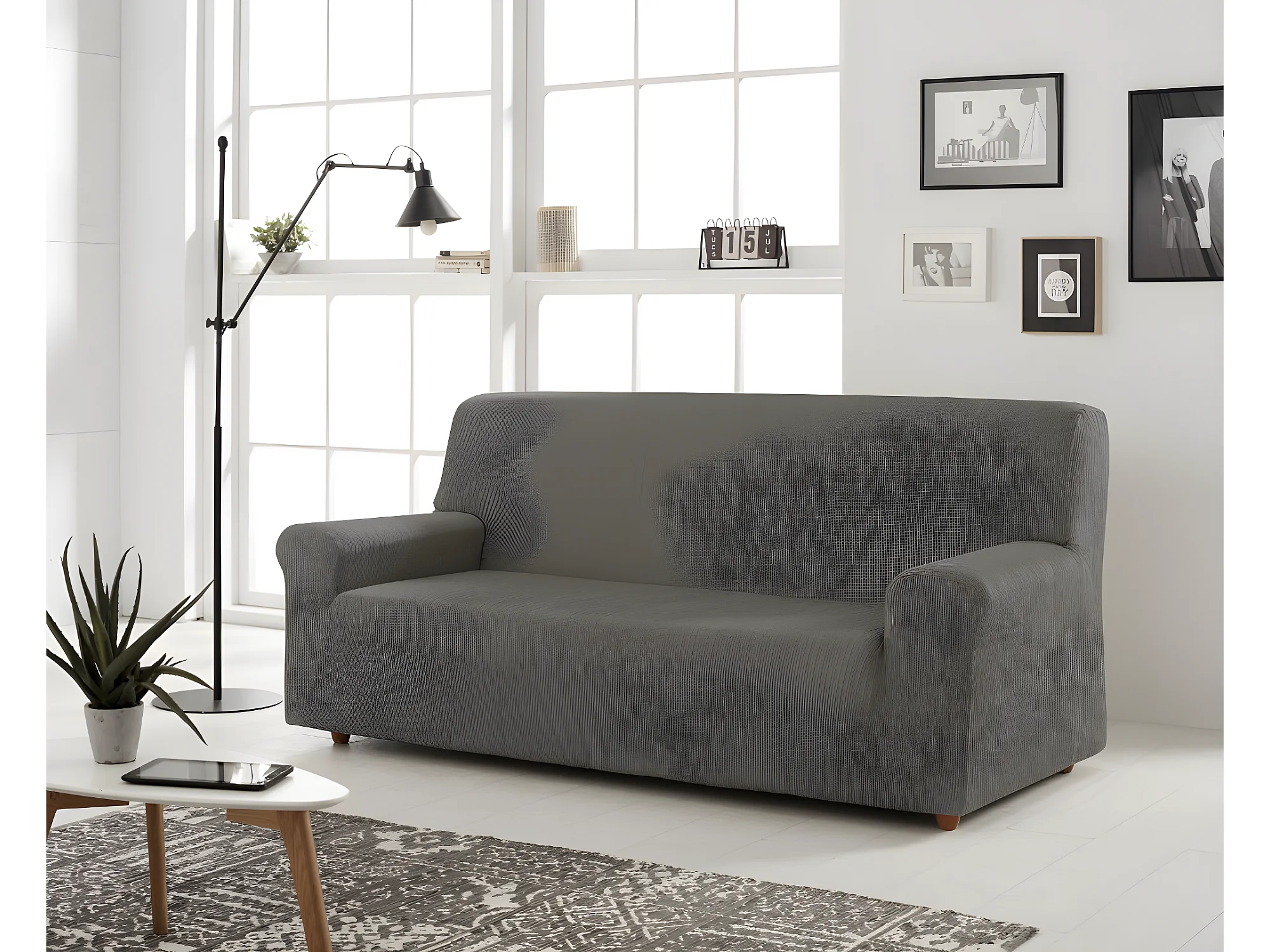 ESTORALIS | Funda de Sofá Tejido Elastico Resistente | Para Sofá 3 Plazas | Tamaño ( de 170 a 220 cm. ) | Modelo BERTA Color Gris