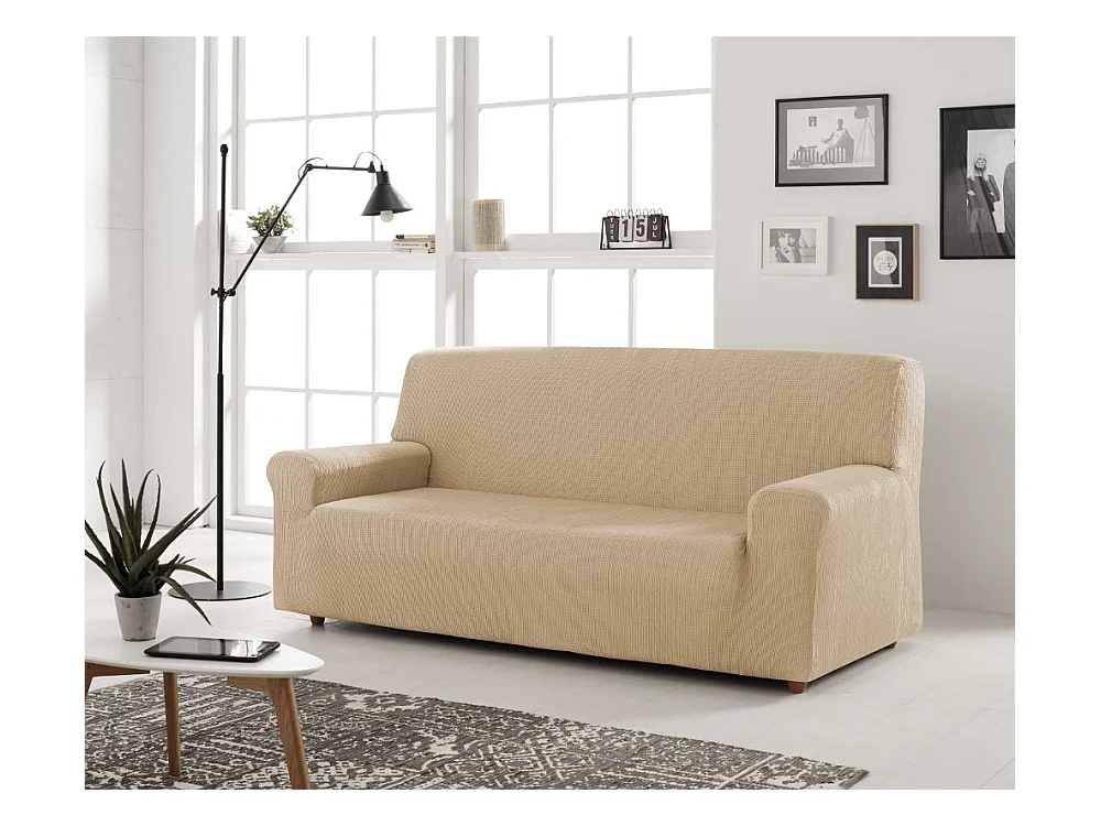 ESTORALIS | Funda de Sofá Tejido Elastico Resistente | Para Sofá 3 Plazas | Tamaño ( de 170 a 220 cm. ) | Modelo VEGA Color Beige