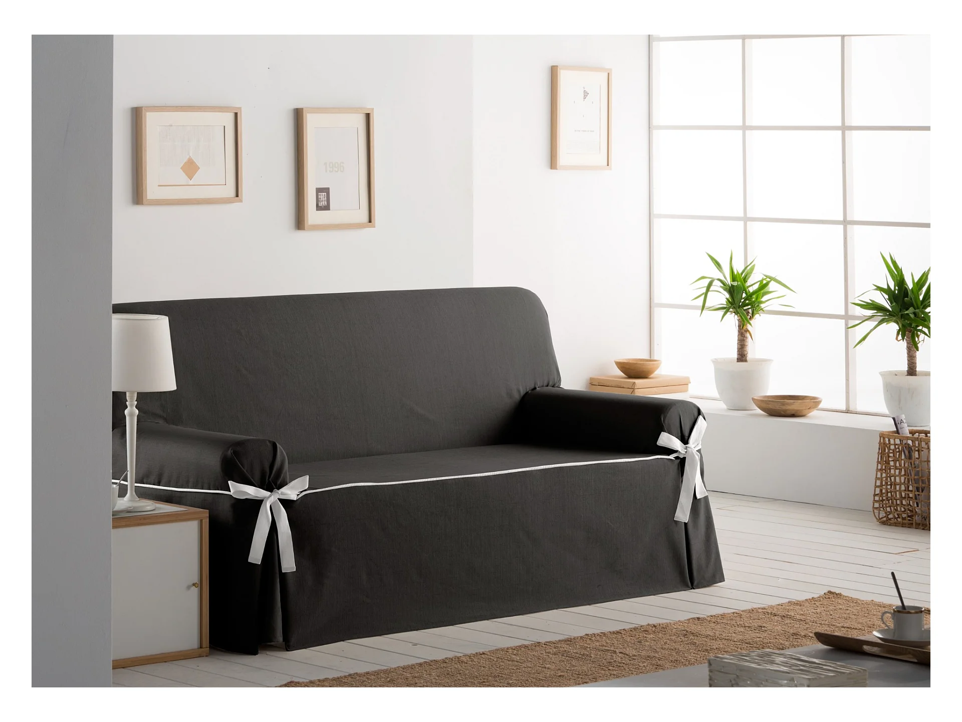 ESTORALIS | Funda Sofá Lazos Tejido Jaquard Resistente | Para Sillon o Relax 1 Plaza | Tamaño ( de 80 a 110 cm. ) | Modelo BERET Color Gris Antracita