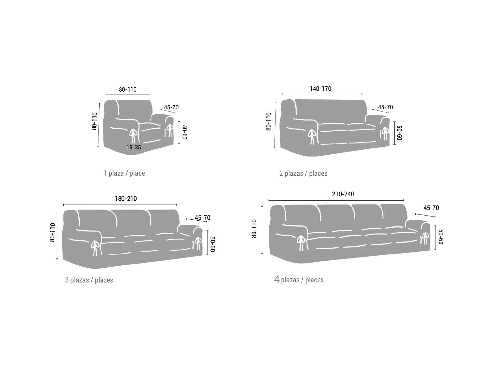 ESTORALIS | Funda de Sofá Tejido Elastico Resistente | Para Sillon 1 Plaza | Tamaño ( de 70 a 110 cm. ) | Modelo BERTA Color Antracita