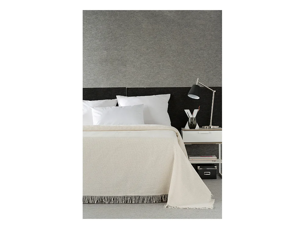 ESTORALIS | Plaid Multiusos Tejido Jacqard | Manta de Algodón Sofa o Cama | Con Fleco ( 180x260 cm. AnchoxAlto ) | Modelo PALERMO Color Crudo