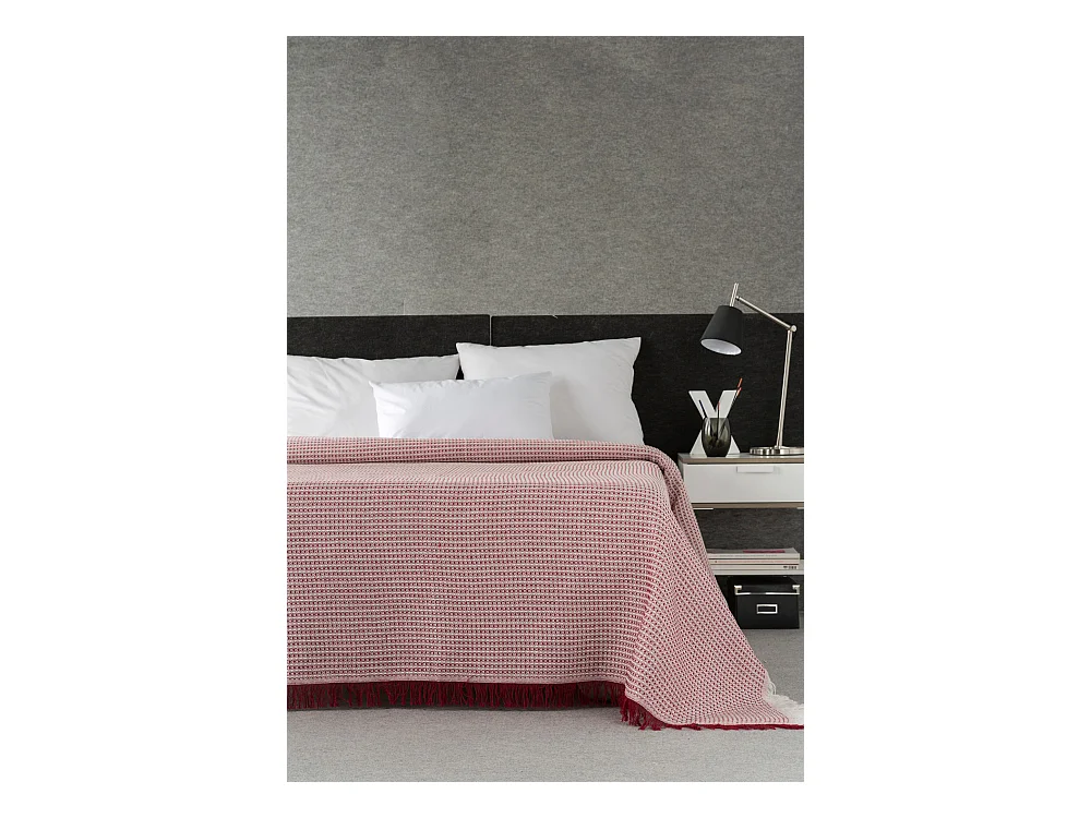 ESTORALIS | Plaid Multiusos Tejido Jacqard | Manta de Algodón Sofa o Cama | Con Fleco ( 180x260 cm. AnchoxAlto ) | Modelo NIDO Color Rojo