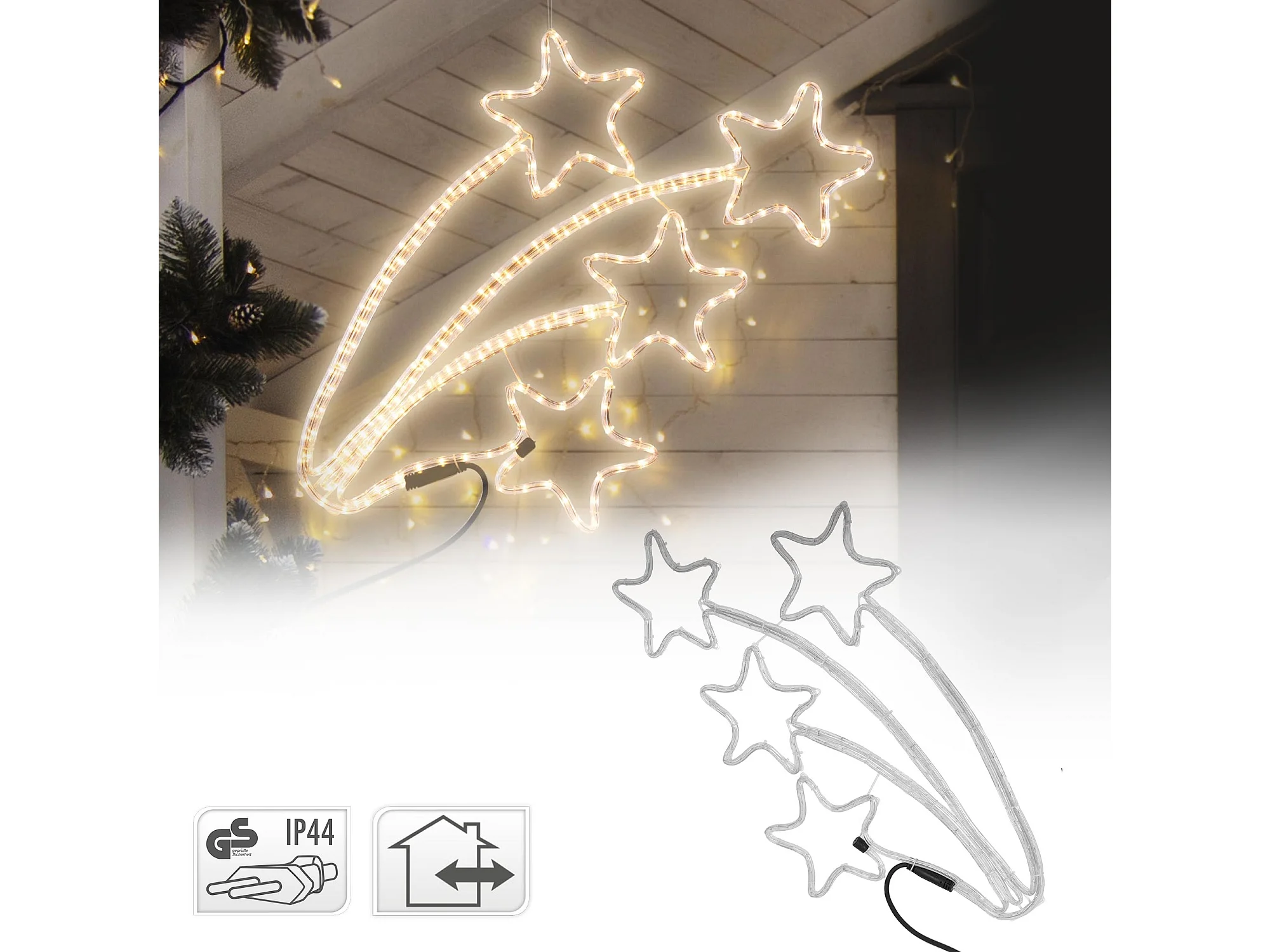 Estrella fugaz cuádruple 216 LEDs blanco cálido decoración navideña ventana 6m