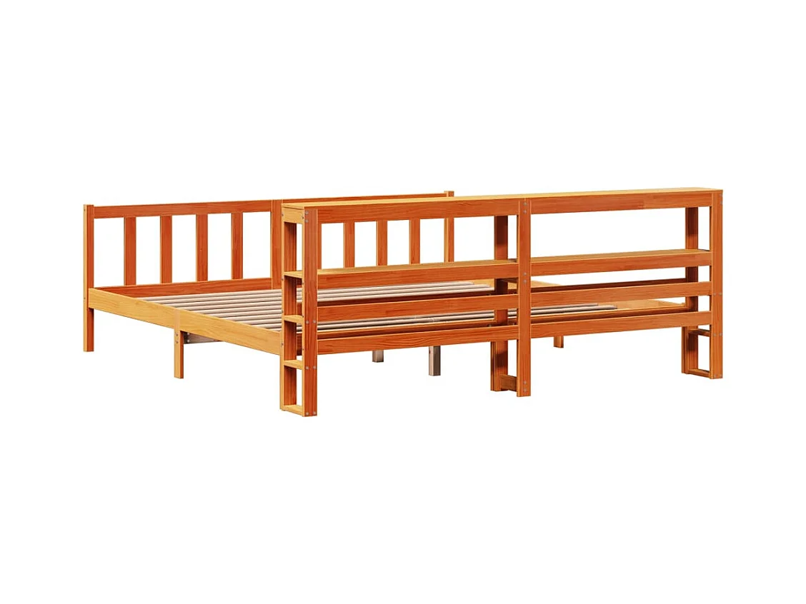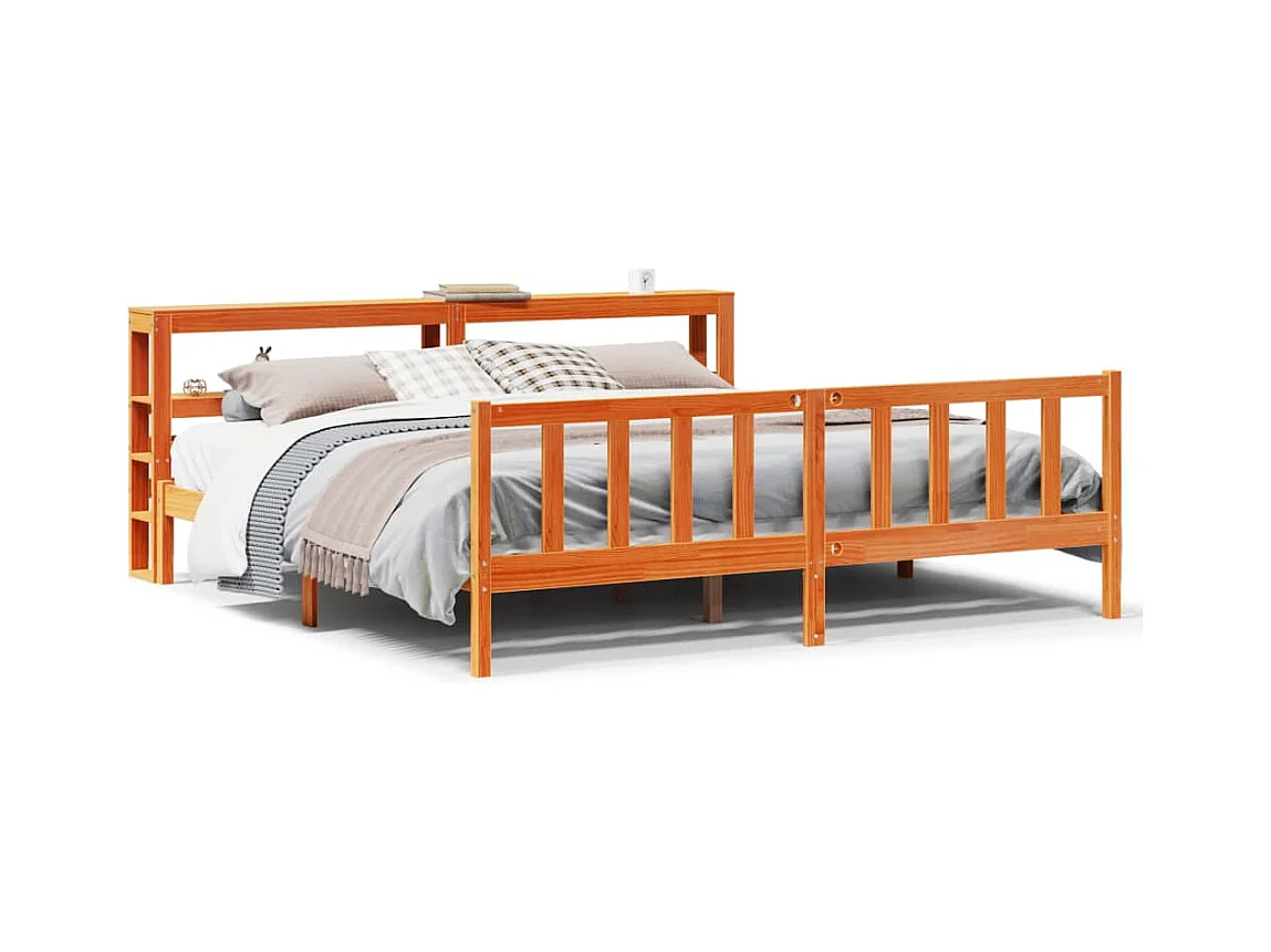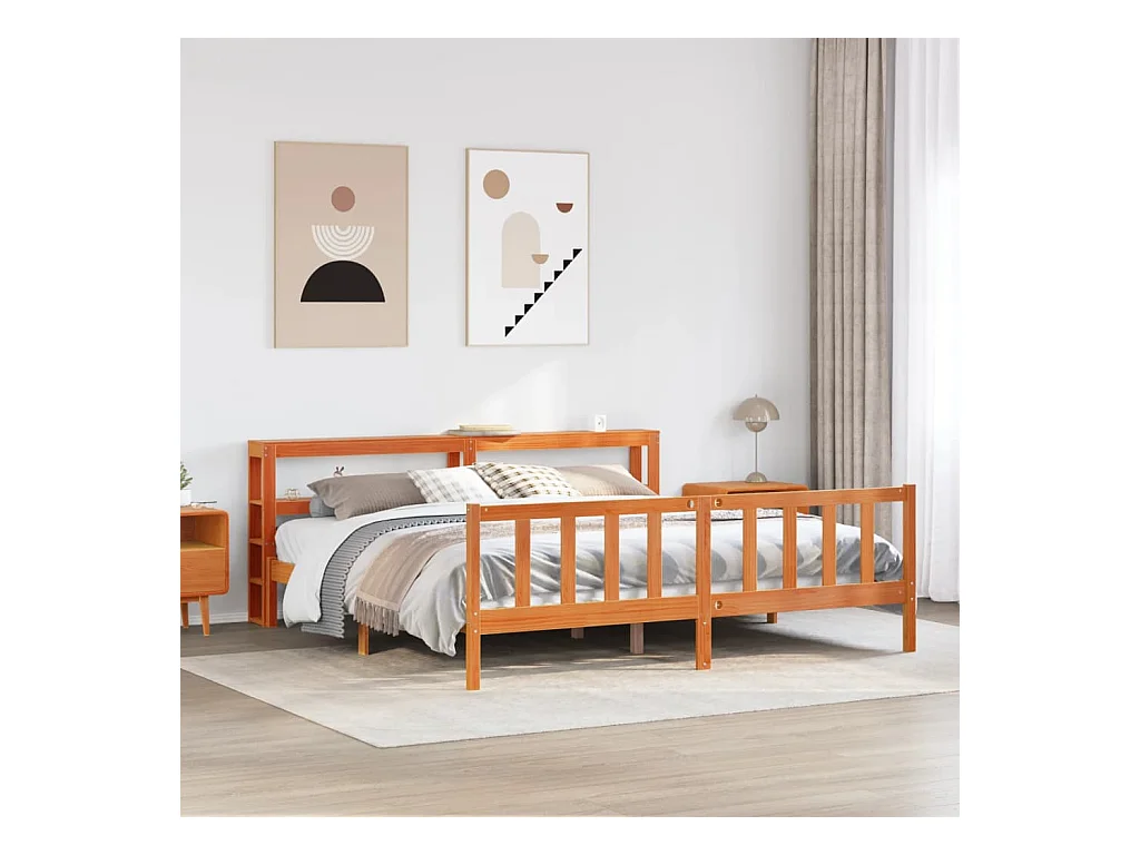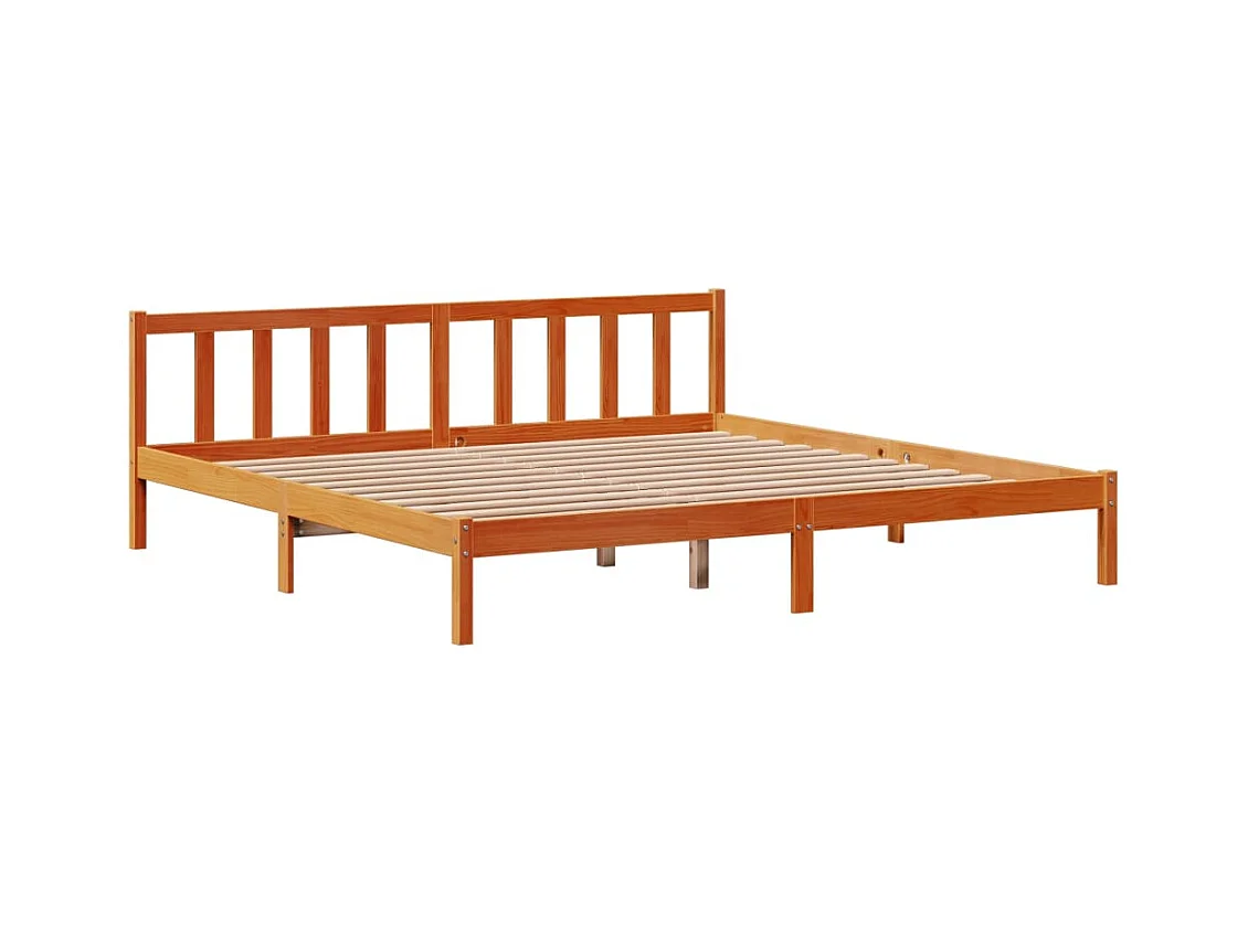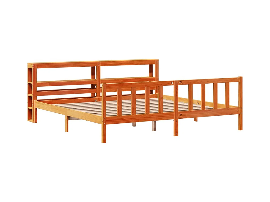 Estructura cama con cabecero madera pino marrón cera 200x200 cm