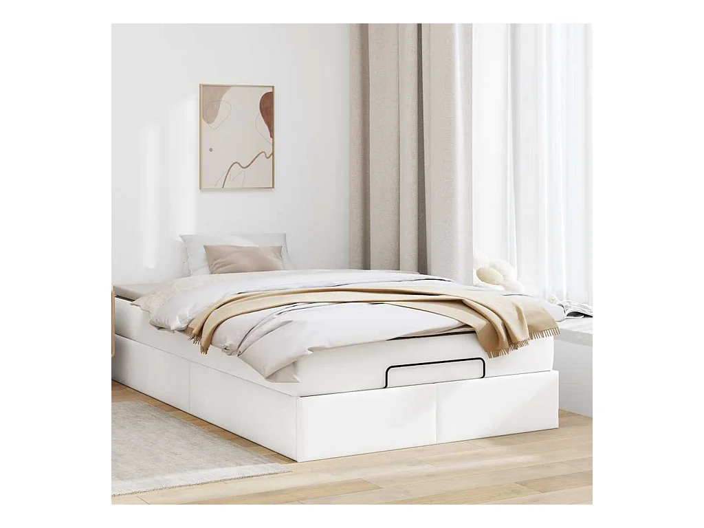 Cama box spring con colchón cuero sintético blanco 120x190 cm