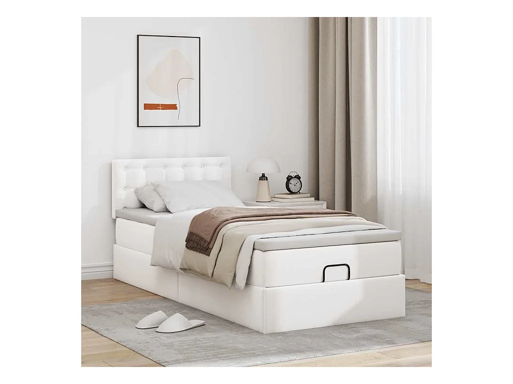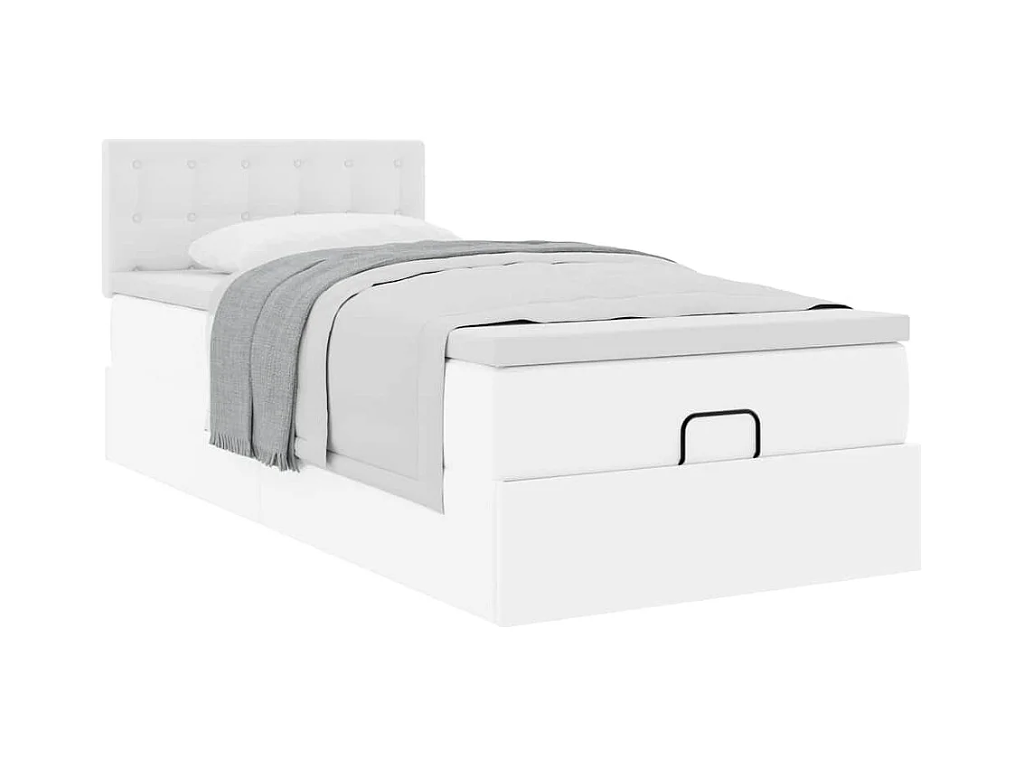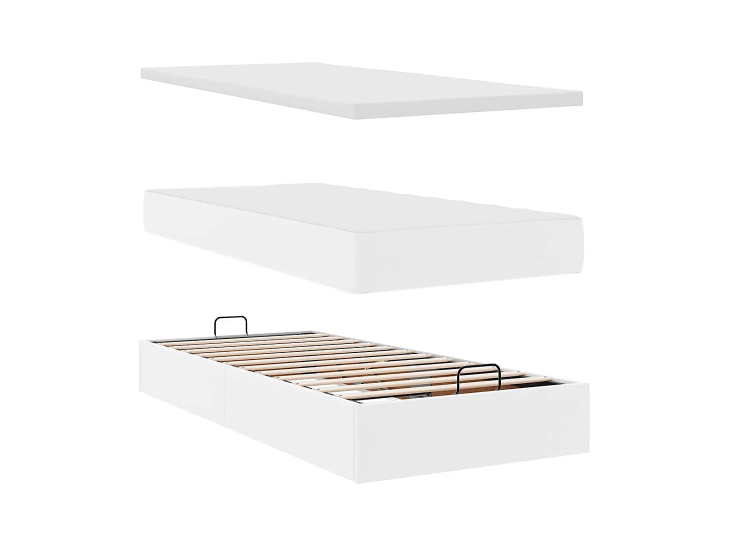 Estructura cama otomana colchón cuero sintético blanco 80x200cm