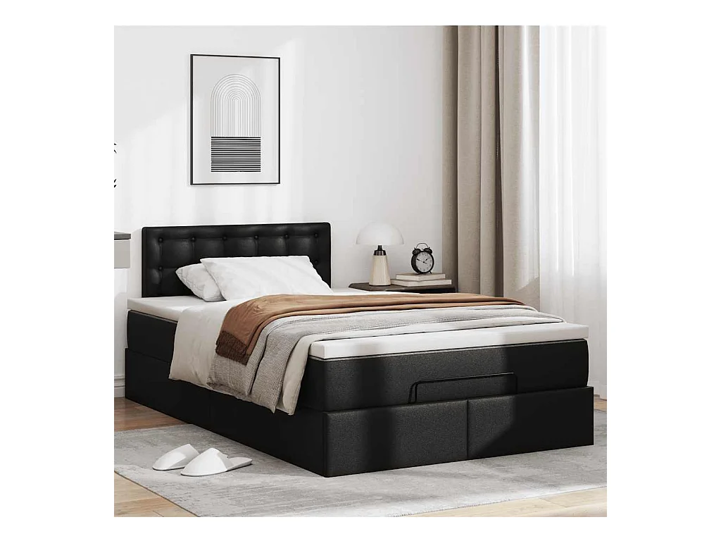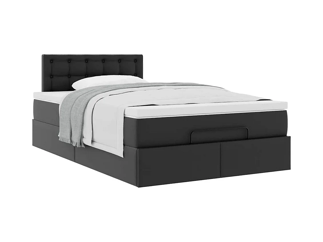 Estructura cama otomana colchón cuero sintético negro 120x190cm