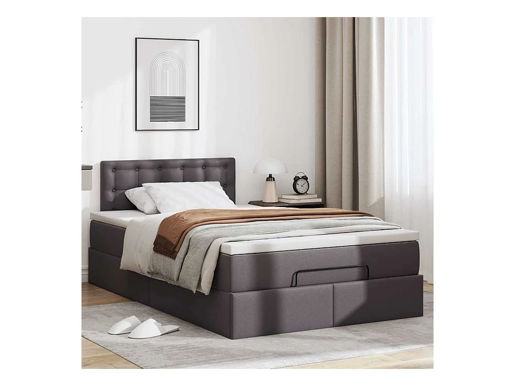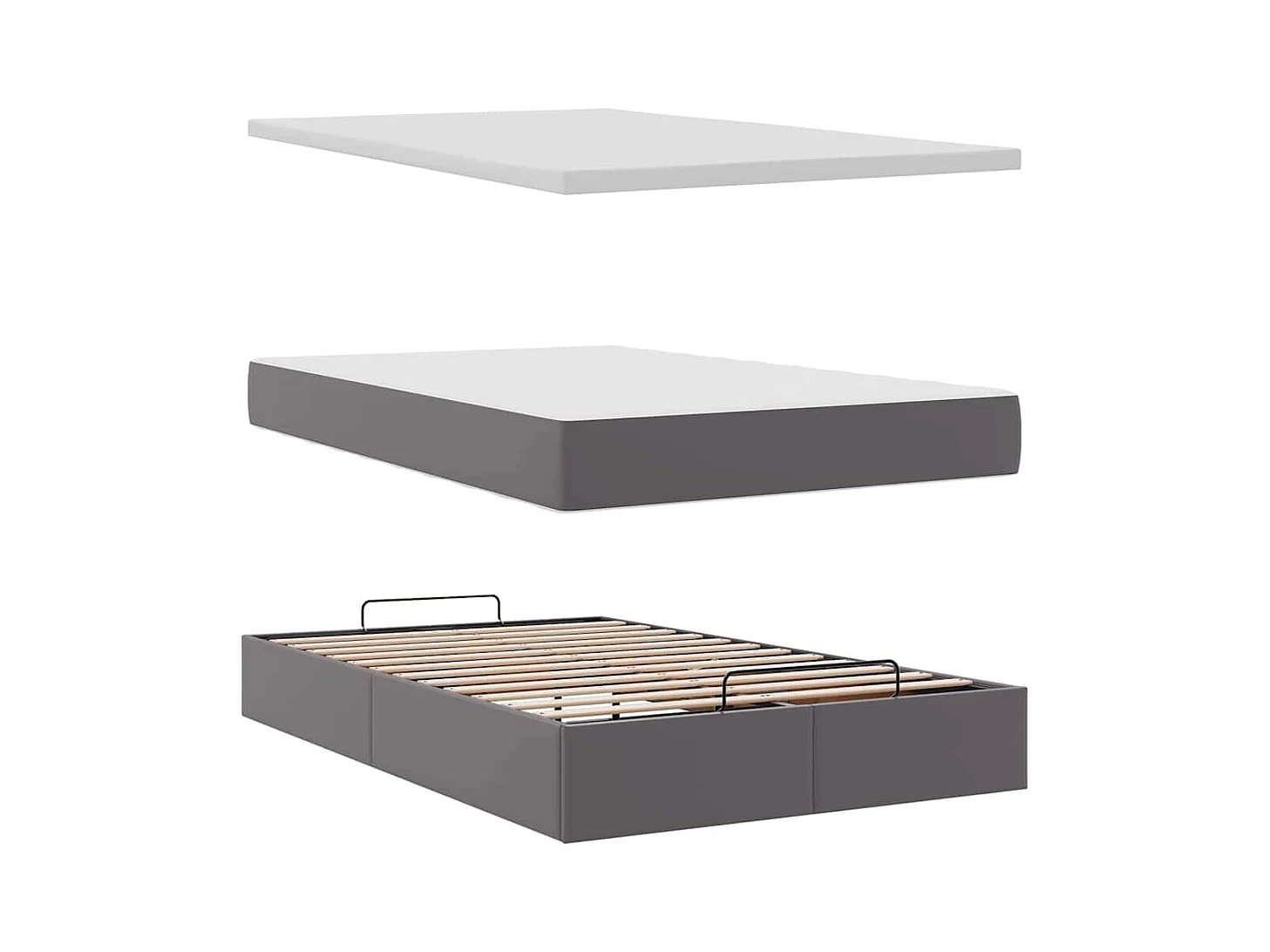Estructura cama otomana colchón gris 120x190 cm cuero sintético