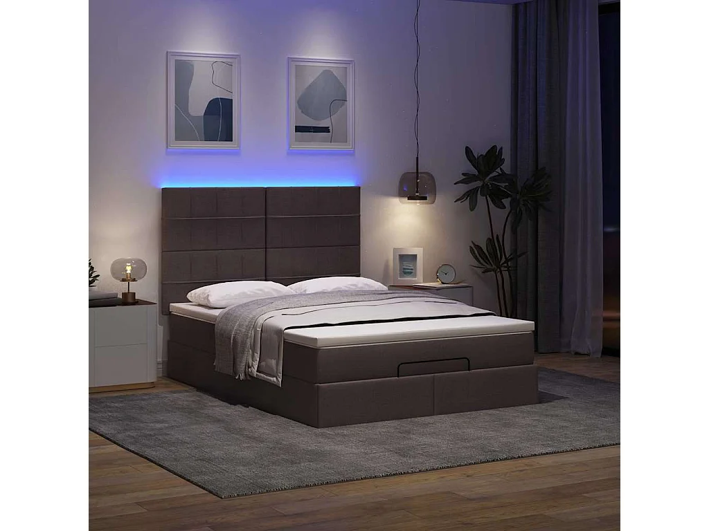 Estructura cama otomana colchón tela marrón oscuro 140x190cm