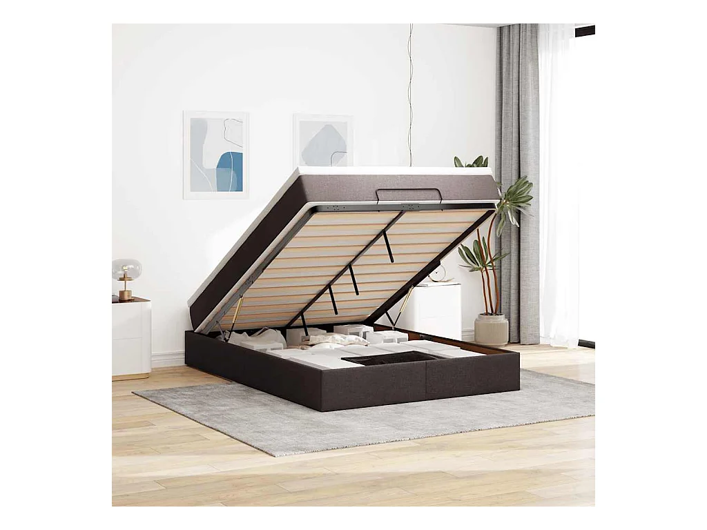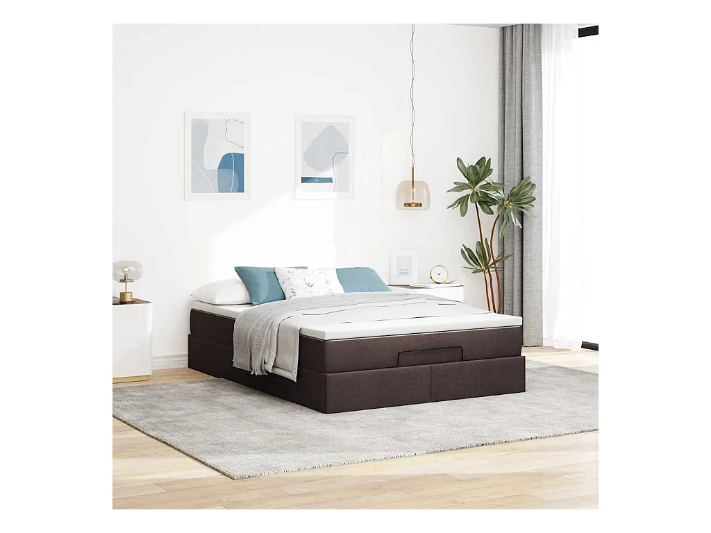 Estructura cama otomana colchón tela marrón oscuro 140x190cm